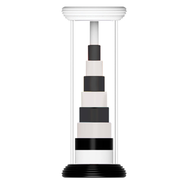 - Sensory toy with a stack of rings inside that flip from black-and-white to rainbow