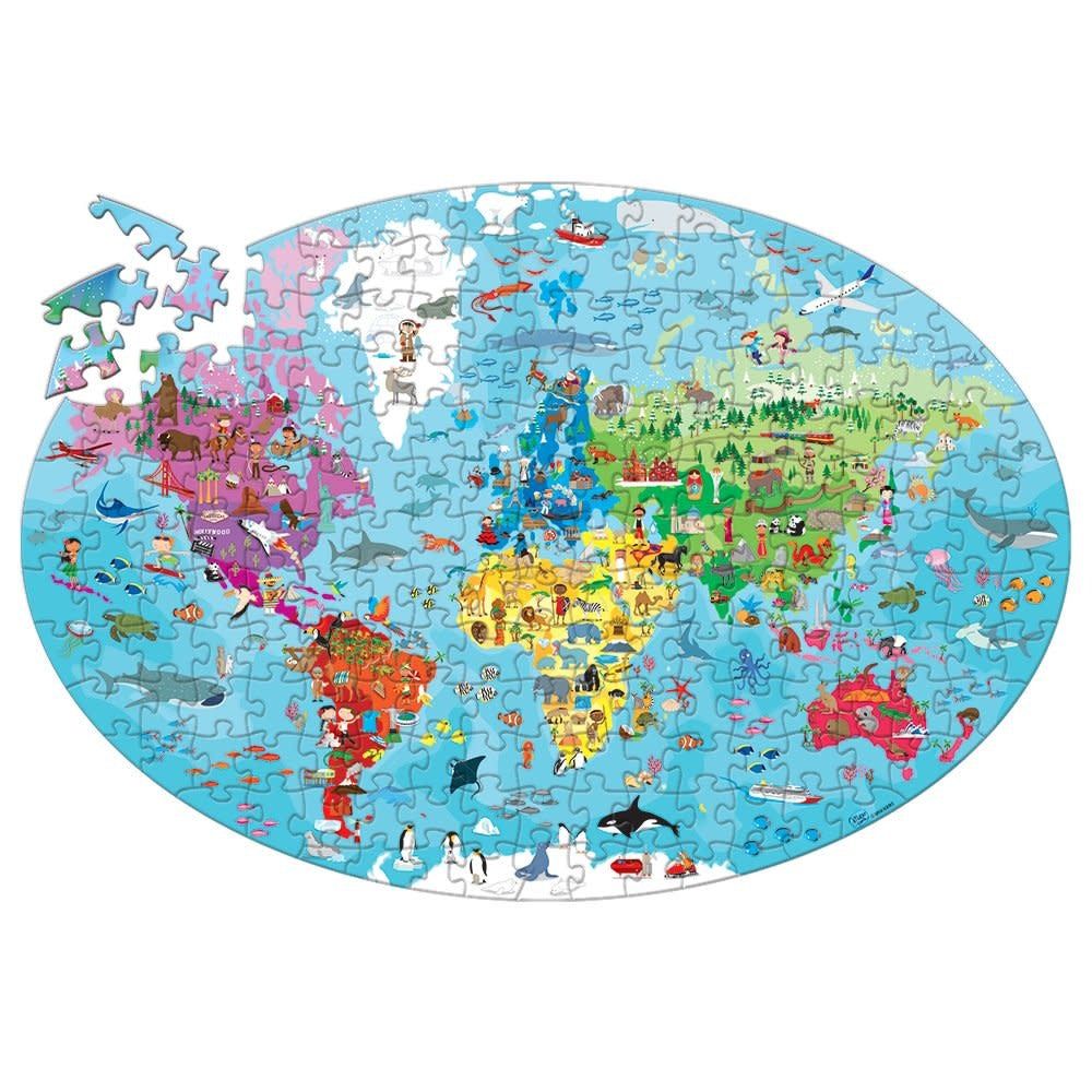 Take an exciting trip through two hemispheres. Check out how deep the oceans are and get a close-up look at the world’s largest and most ferocious animals. Learn about our most interesting and impressive buildings! Read all kinds of facts in the 32 page book, then test your memory by assembling a 205-piece puzzle!