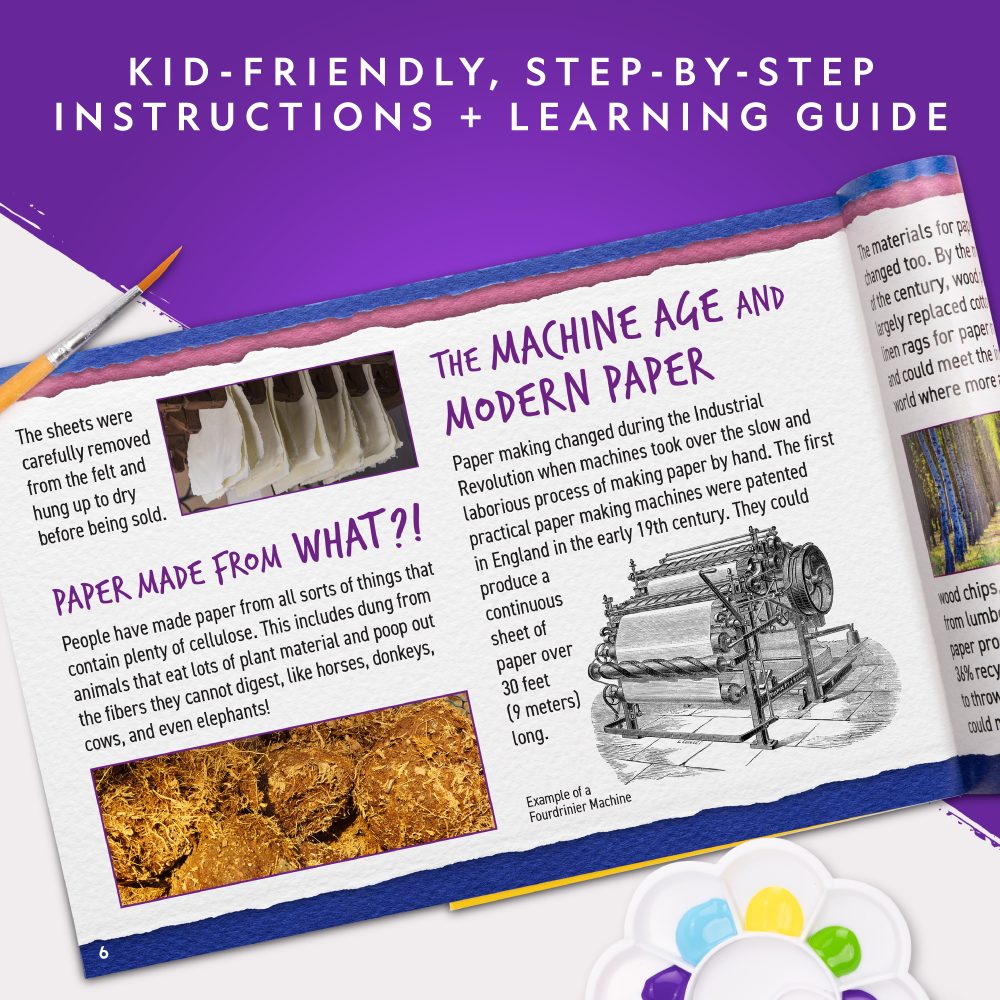 - The step-by-step instructions are kid-friendly and contain ideas for blending colours as well as tips on how to use other household goods to make even more paper.