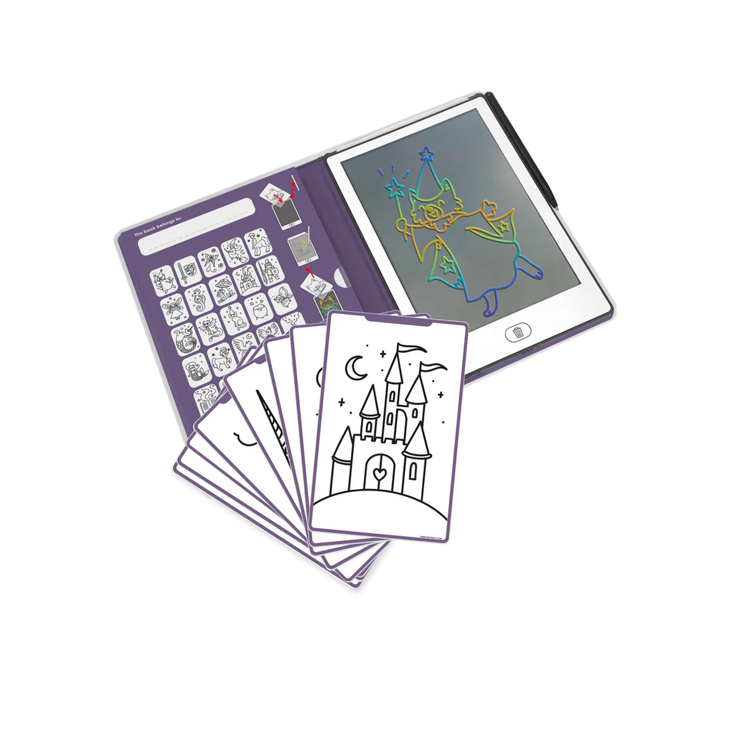 Give your child a limitless drawing experience with KIDYDRAW-MINI, a drawing book with LCD screen featuring 30 transferable illustrations and 5 unique themes. Ideal for stimulating creativity and independent learning, it slips easily into any bag, so you can create anywhere, anytime.