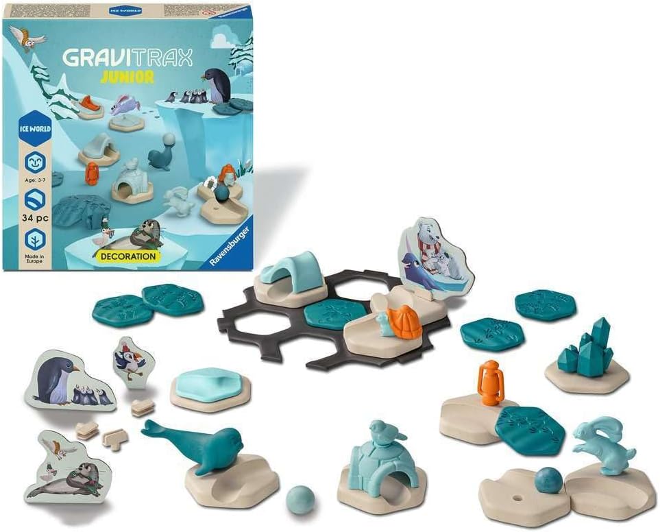 Enhance your GraviTrax Junior experience with the Extension Ice World, packed with wild fun and adventurous possibilities. Designed for young explorers, this set introduces jungle-themed elements that transform every marble run into an imaginative adventure. Children can build, test, and tweak exciting track layouts while learning about gravity, motion, and cause-and-effect through play.
