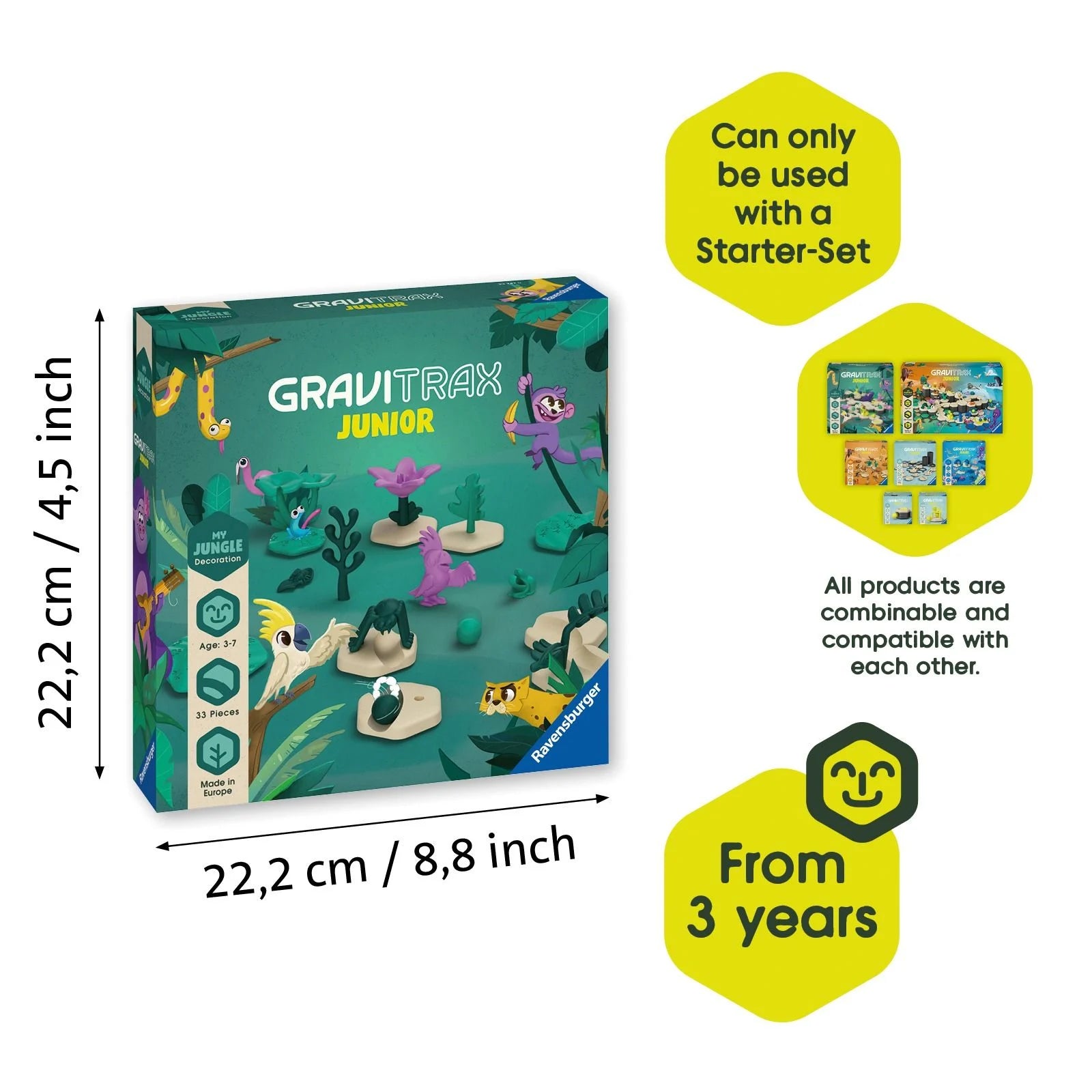 - Compatible with all GraviTrax Junior sets for endless design combinations.