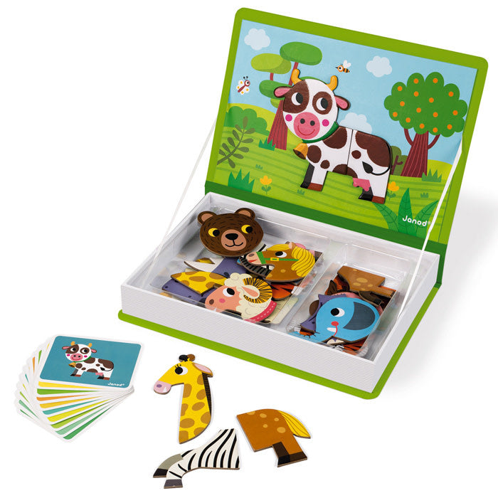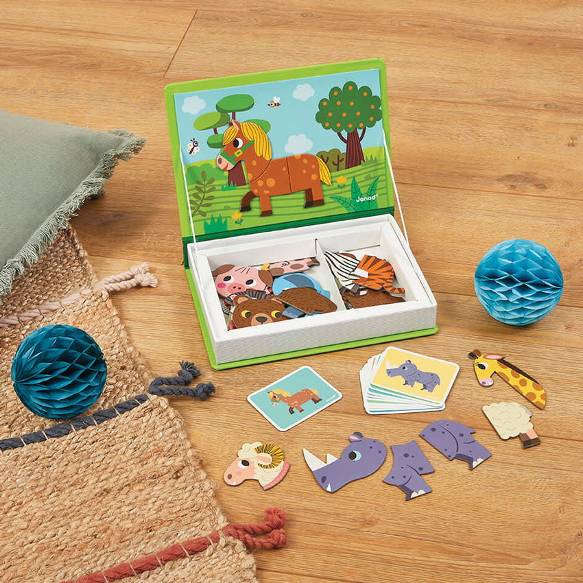 The best starter magnetic book you can choose is the Animals Magnetibook from Janod. 30 magnets are included to form the images of 10 picture cards. Use the head, body and leg parts to copy the picture cards or create your own weird animals, the results are hilarious! The Animals Magnetibook has a magnetic backing board to attach the pieces and looks like a book so not only does everything store neatly inside, it will look great on the shelf as well. Perfect for travel with the littlies or a fantastic addition to the playroom.