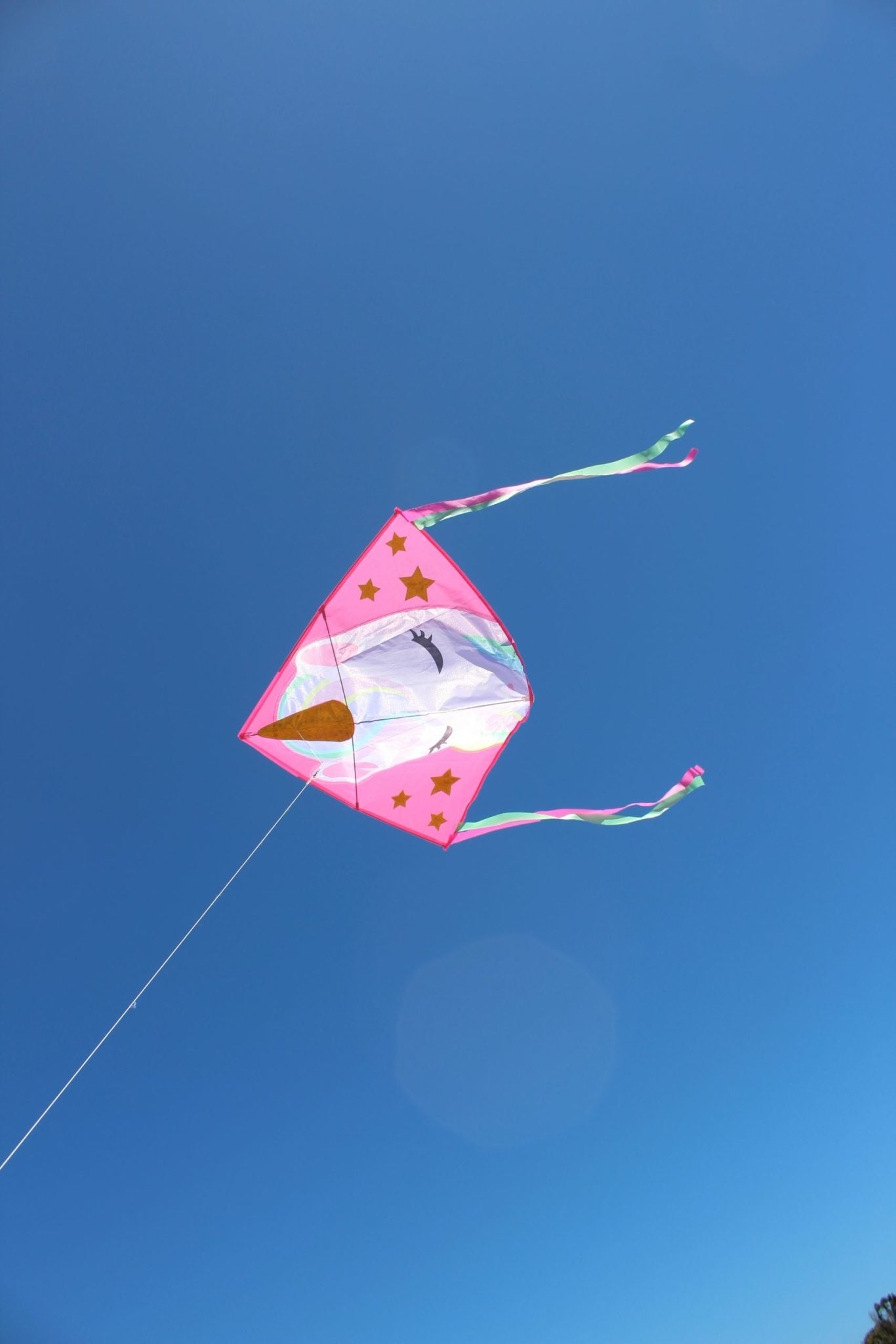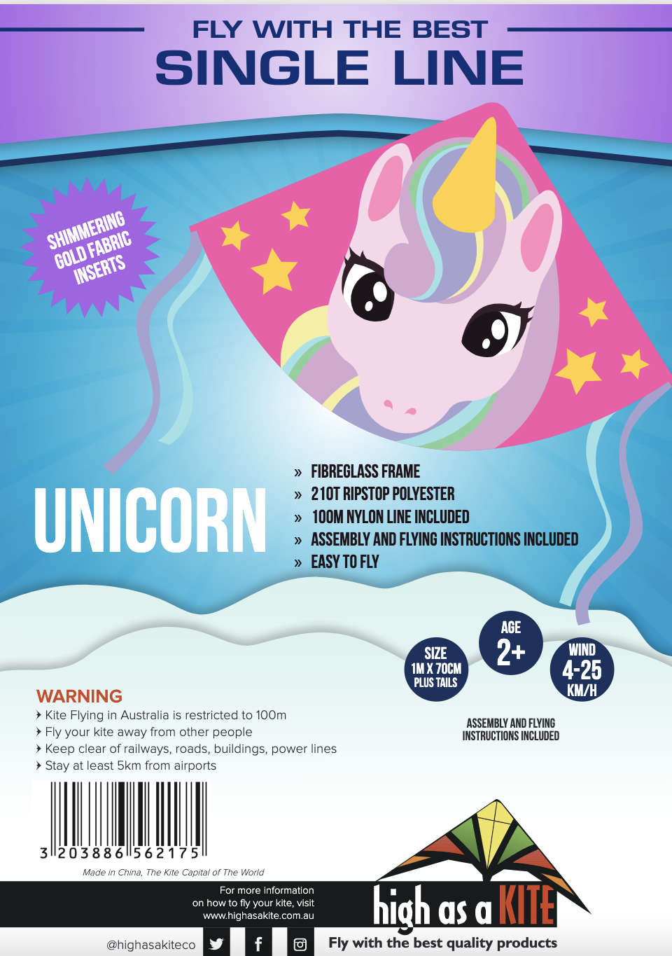 This gorgeous printed kite has shimmering gold fabric inserts. It is printed on ripstop 210T Polyester with lovely graphics, colourful highlights and tails. It’s delta shape make sure it flies with ease through the air. Suitable for anyone from 2 years plus, it will appeal to a wide range of customers.
