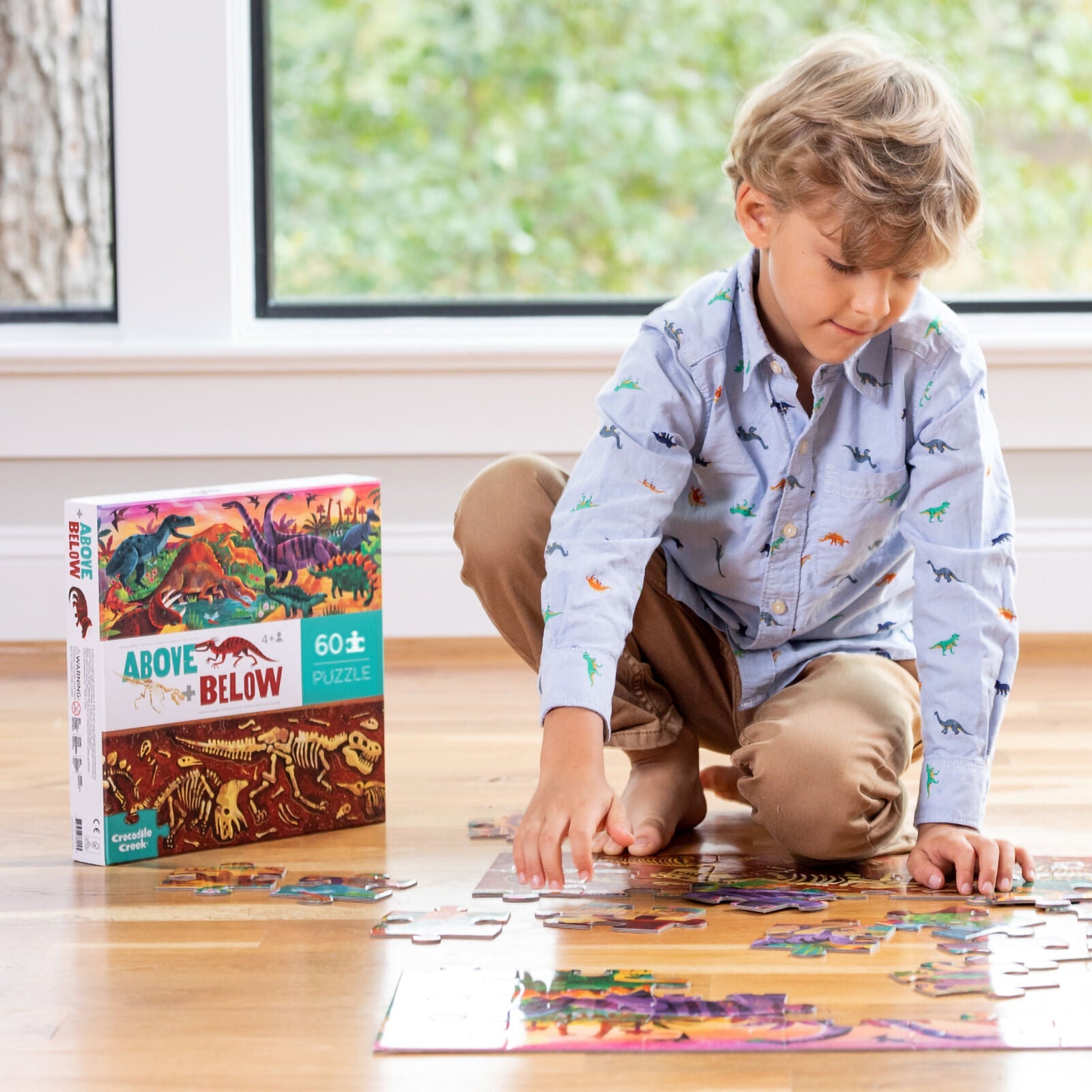 Introduce inquisitive children to the concept of opposites with this exploration of dinosaurs, both above and below the earth. The jumbo, sturdy pieces of this 60-piece, high quality floor puzzle are ideal for little hands.
