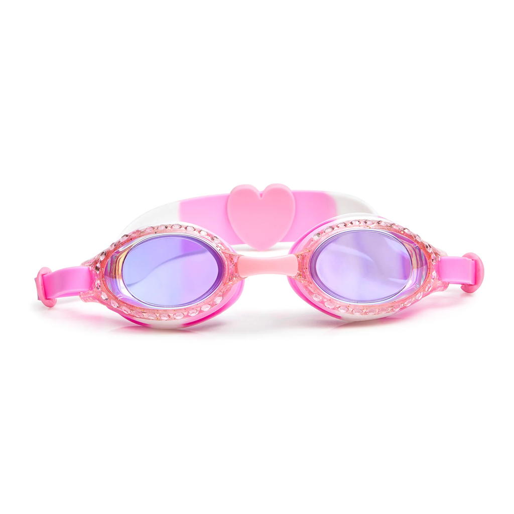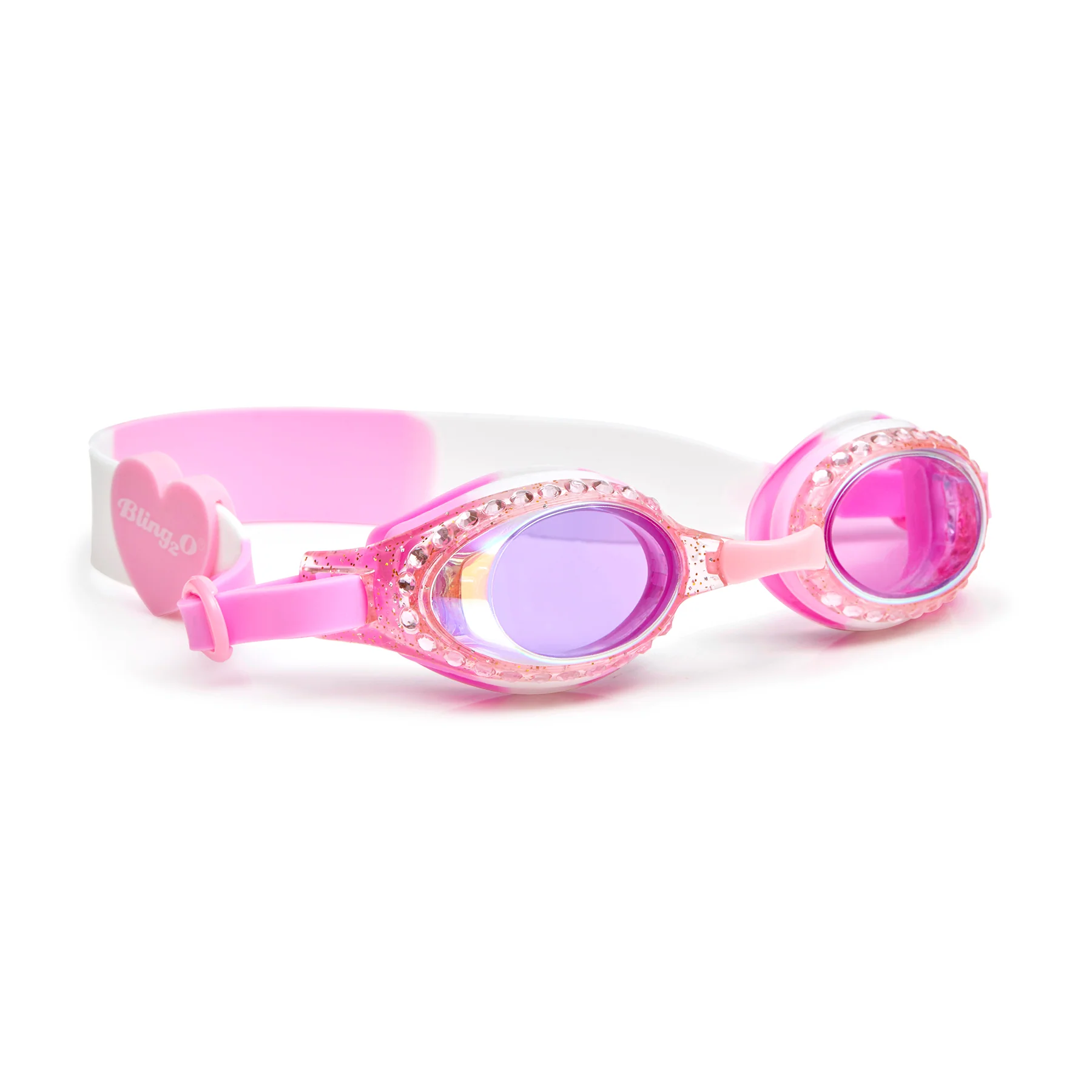 Did you know Bling2o’s first swim goggle was a glitter classic? This iconic style is featured on a traditional shaped frame infused with glitter and embossed with a full set of colorful rhinestones around both of the lens.