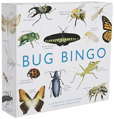This beautifully illustrated bingo game features 64 species of bugs from around the world. Identify all kinds of insects – from the Giant Hawker Dragonfly to the Kissing Bug and the Orchid Bee to the Sacred Scarab – mark them off on your card and bingo!