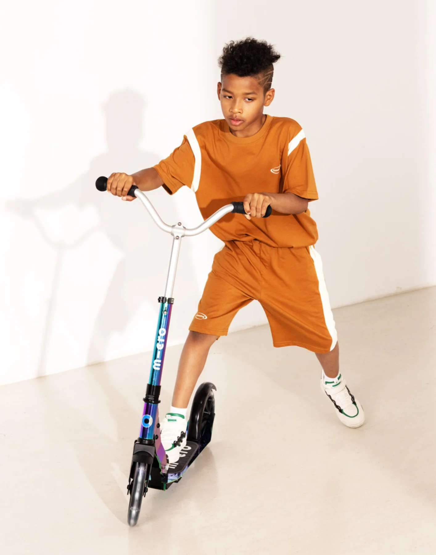 With its large 200mm polyurethane wheels—unique among Micro kids' scooters—this model offers a smooth, fast, and comfortable ride. Kids can glide over bumps with ease, making every journey feel effortless. Whether it’s cruising to school or exploring the neighbourhood, the Micro Cruiser Neochrome LED Scooter makes it an adventure!