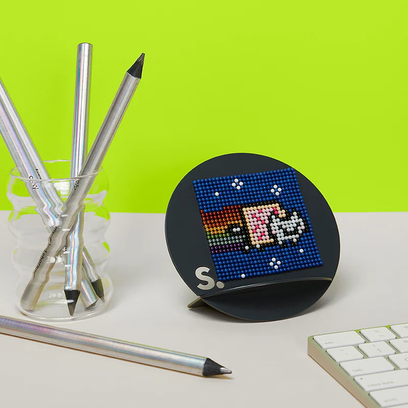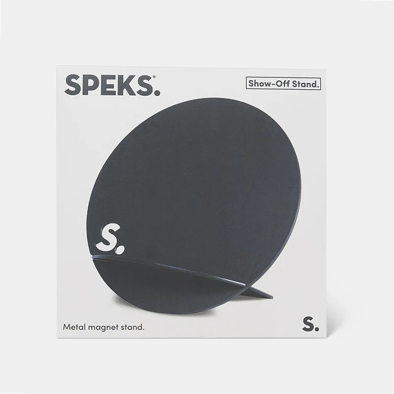 Take a stand. Show off Speks in style with our exclusive metal stand. Designed to perfectly pair with Speks, Fleks and Geode, this compact stand is the perfect fit for any desk, shelf or anywhere a little fun is needed.