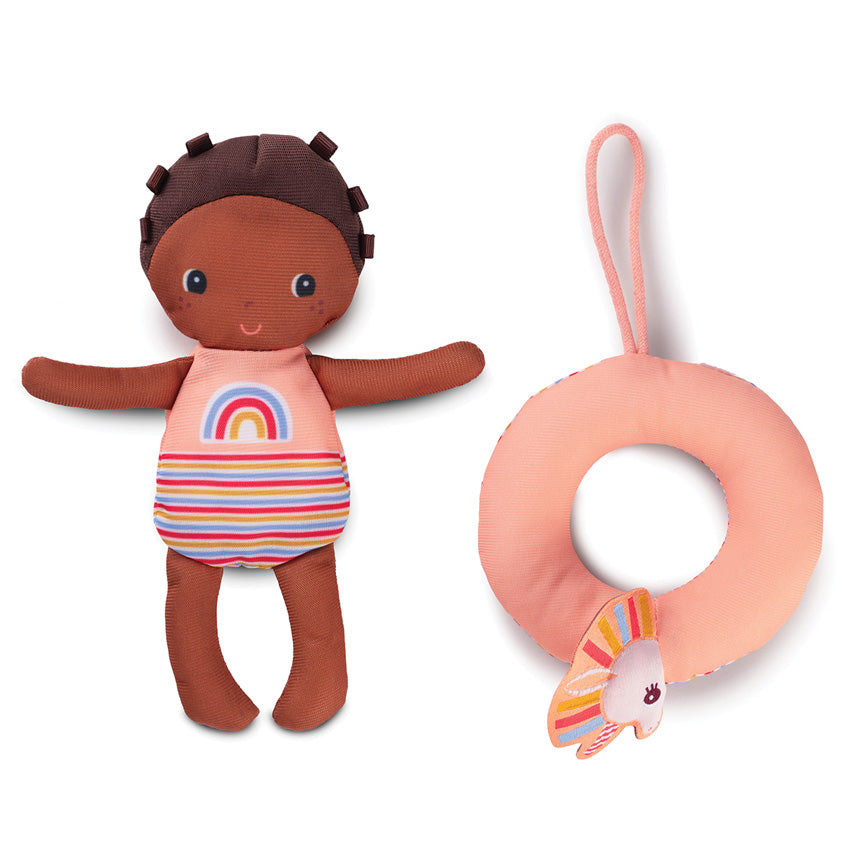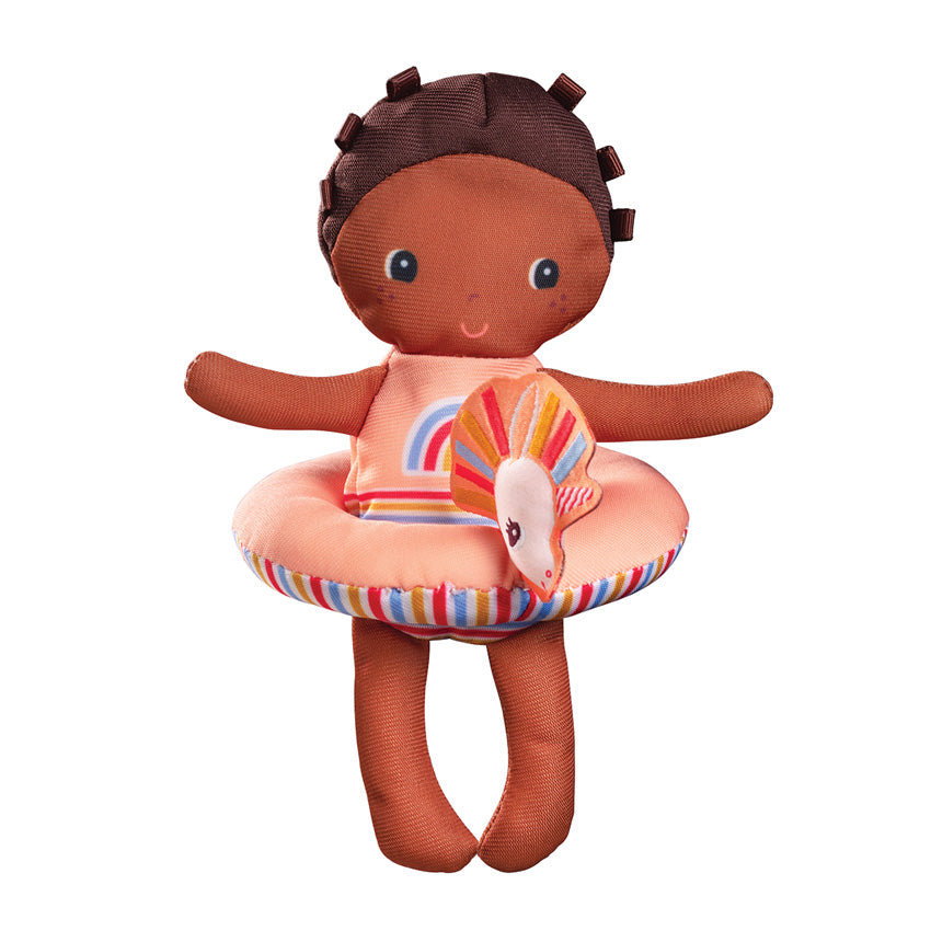 Bath Doll Lena and her unicorn are delightful companions for water-loving kids. Lena, the bath doll, and her unicorn friend are perfect for bath or pool time fun. Lena comes with a life ring to ensure her safety while swimming, and her unicorn pal loves joining her for a playful splash. These toys are designed to withstand water play and are easy to clean – just wring Lena out and hang her to dry. Not only do they provide hours of imaginative fun, but they also help build your child's confidence in the water. With dimensions of 11cm x 4cm x 18cm, Lena Bath Doll and her unicorn are fantastic additions to your child's bath or pooltime routine. Suitable for kids aged 6 months and older.