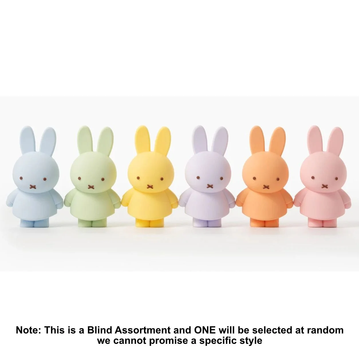 Discover which pastel Miffy bunny awaits in this blind box figure. With six collectible styles—Ocean Blue, Minty, Lemon Drop, Lavender Lullaby, Peach Cloud, and Blush Pink—each box offers a delightful surprise. Perfect for collectors seeking soft, dreamy designs that add charm to any display.