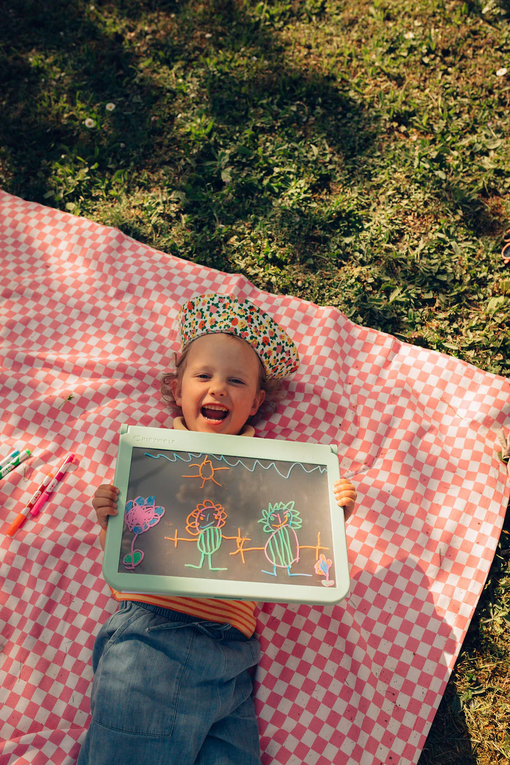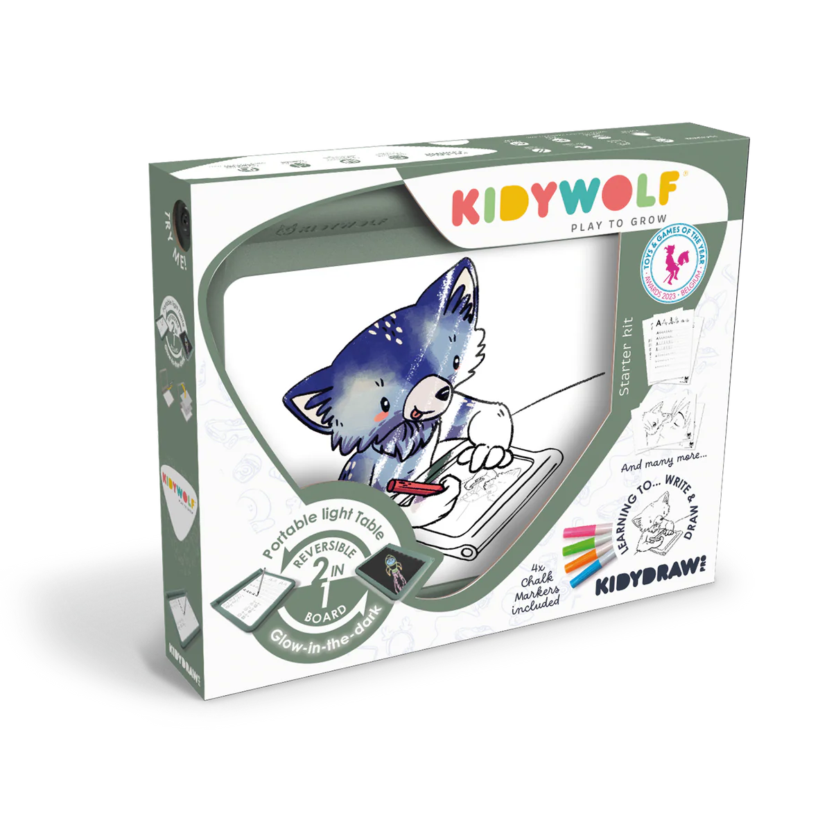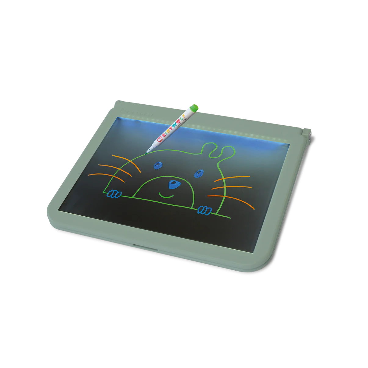 KIDYDRAW PRO is a portable luminous tablet. Your child can faithfully reproduce letters, numbers or any existing drawing. The two-sided back doubles as a blackboard, with a neon effect that brings out the colors of your child's drawing in the dark.