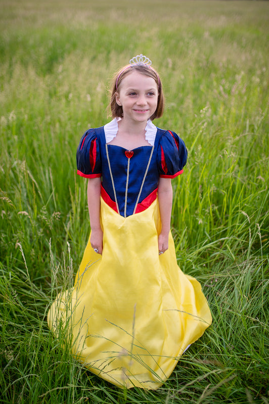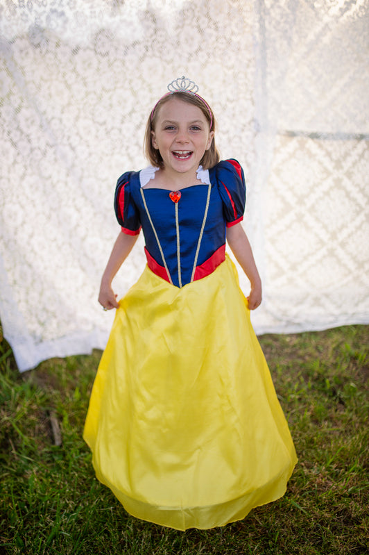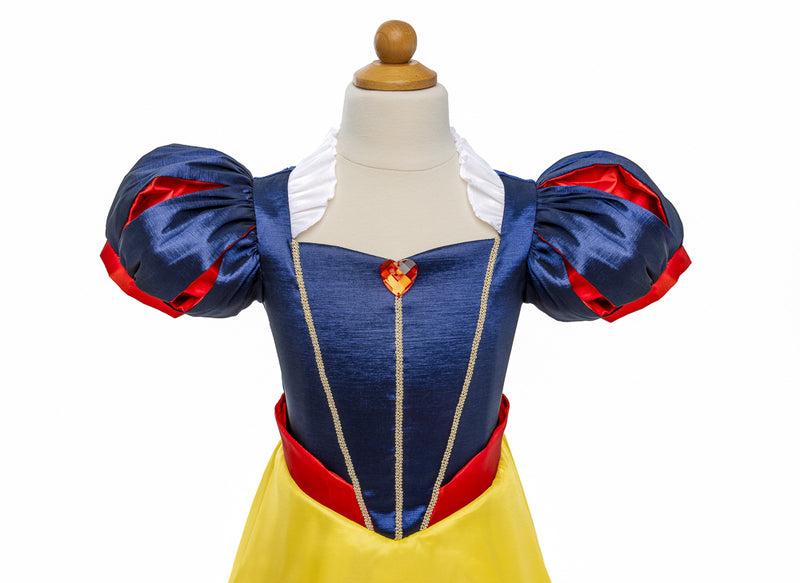 the Snow White Gown is made using soft fabrics that are gentle on the skin and free of any loose glitter.