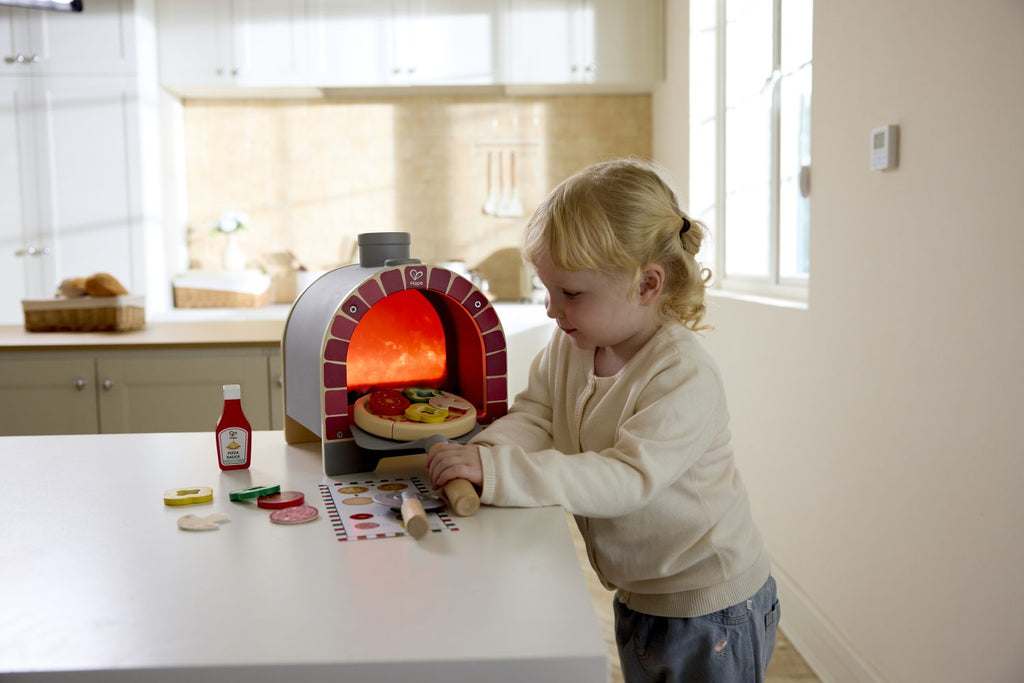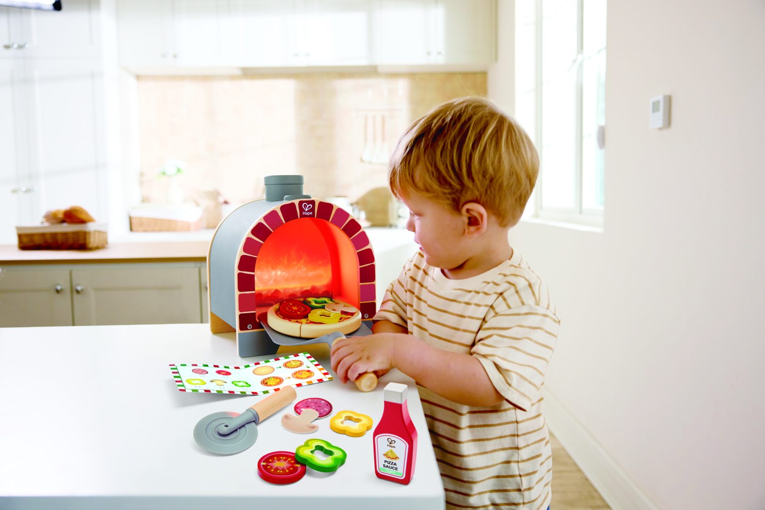 - REALISTIC PIZZA KITCHEN TOY: This traditional pizza oven includes a realistic burning firewood effect with a matching cooking-based sound, creating a lifelike pizza-making adventure for children.