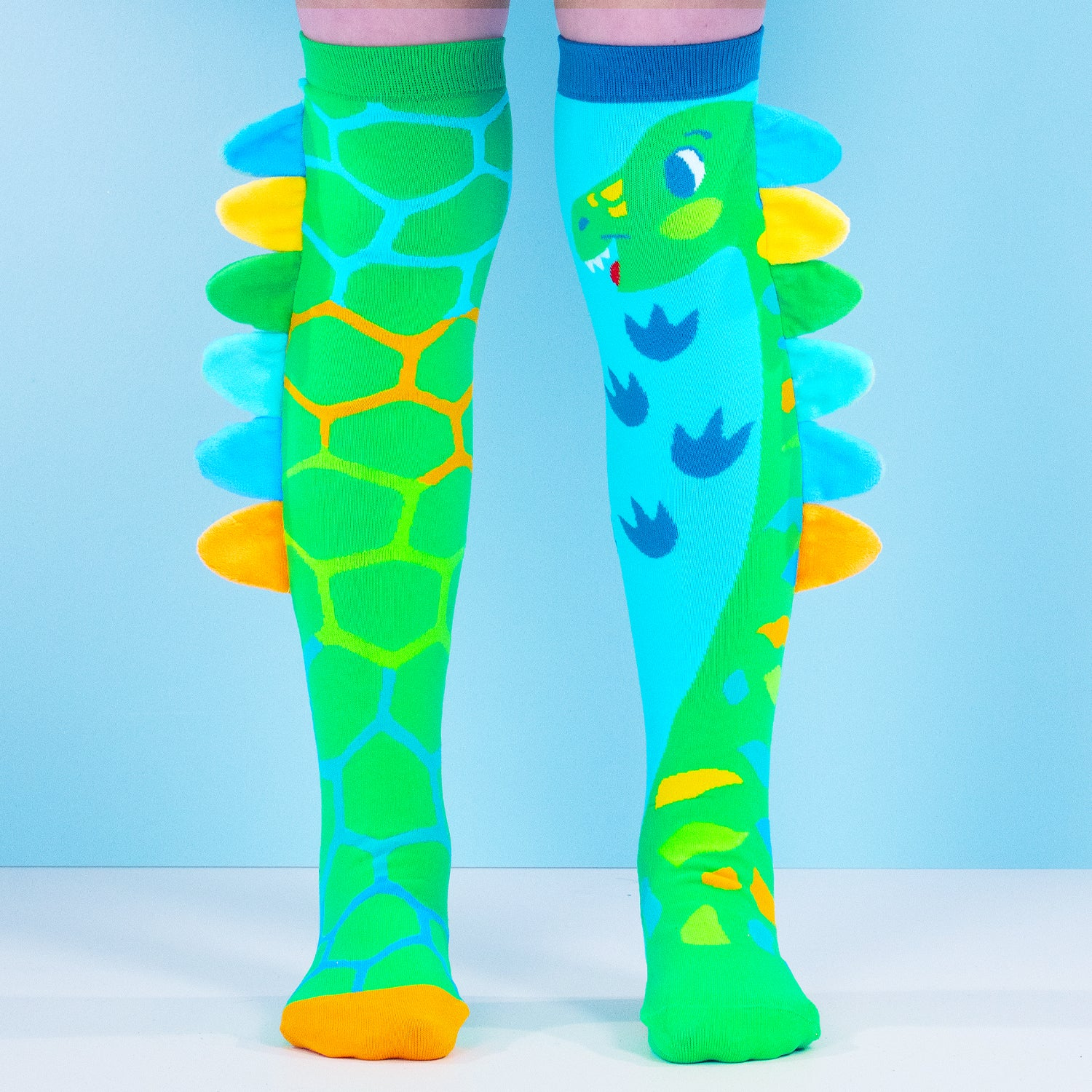 Let your imagination stomp wild with our boldest Dinosaur Socks yet! Featuring vibrant greens, cool blues, and bright pops of yellow, plus 3D plush spikes, these socks are made for little adventurers who love to stand out.