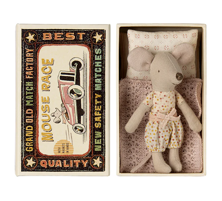 Maileg Sleepy Wakey Baby Mouse in Matchbox Rose 2025
