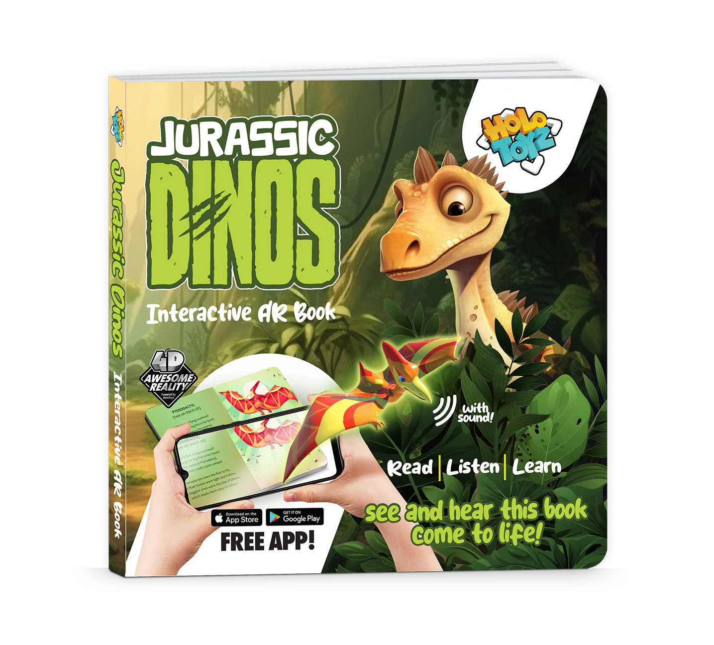 Simply download our free app, point your device at the pages, and watch the magic unfold. Swipe, interact, and learn as the dinosaurs move, roar, and engage in thrilling animations. It's an exciting new way to read, explore, and spark a love for learning about the prehistoric world.