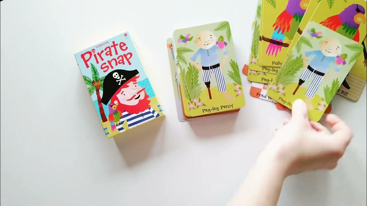 A fun card game for two or more players. Contains 52 cards (13 sets of four matching cards). Each card shows a colourful illustration of a pirate, including One-eyed Bill, Peg-leg Percy and not forgetting Polly the Parrot and Fred the Cabin boy. A great way for young children to develop word and picture matching skills.