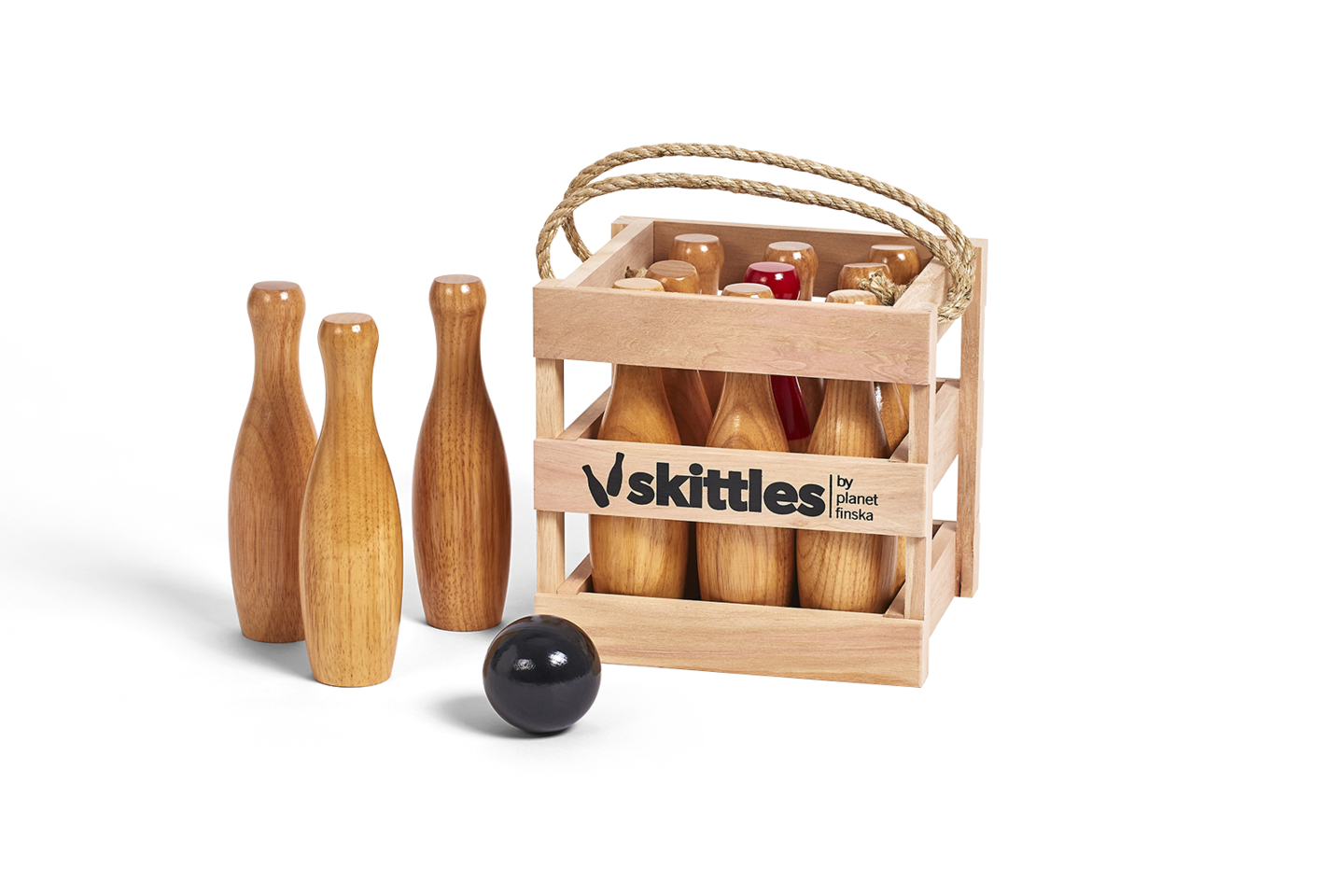 Just add your own indoor or outdoor “alley” & get skittling. Players score by rolling each of the three balls to knock as many of the pins down as they can. Some variations of this ancient game only allow points to be scored if the “king pin” has fallen.
