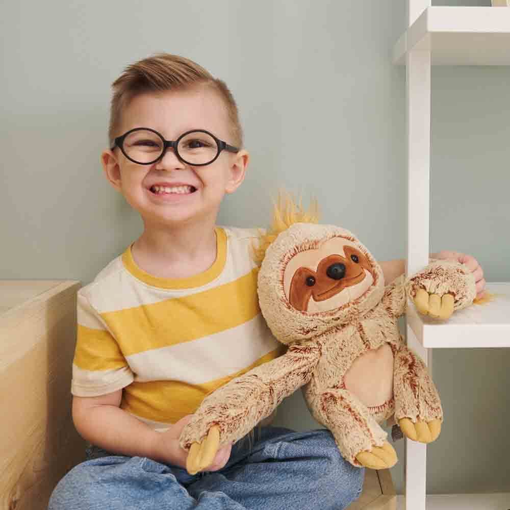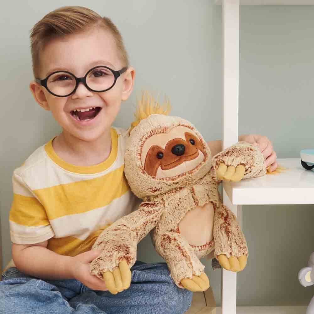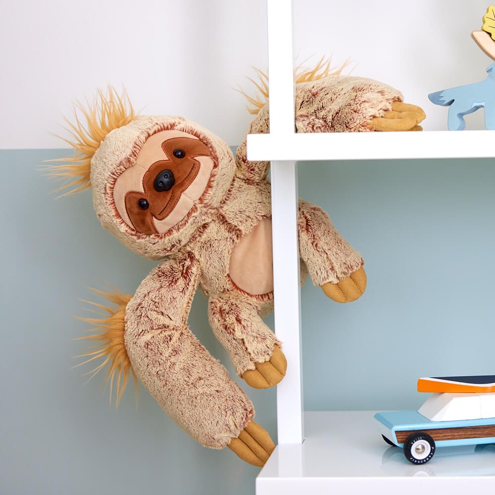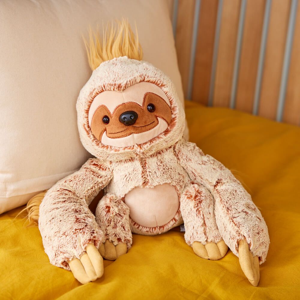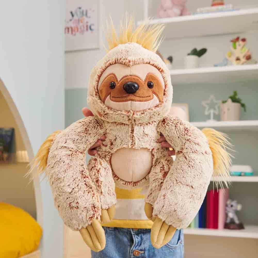• Whimsical sloth with ultra-soft, cream-and-copper plush and extra-long arms that are angled to hug you back!