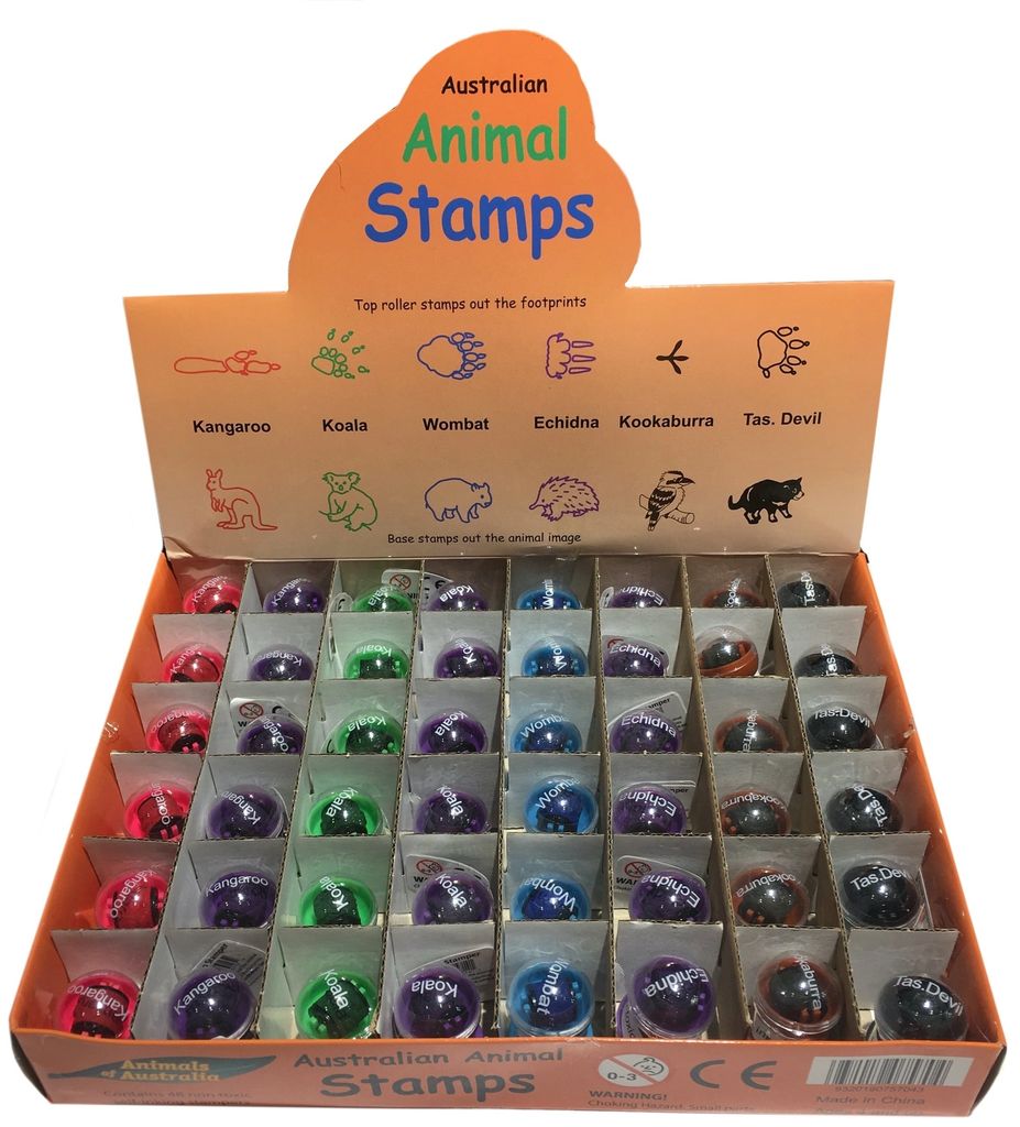 Australian Animal stampers. The base end stamps out the animal and the top end is a roller stamp that prints the animal’s footprint.