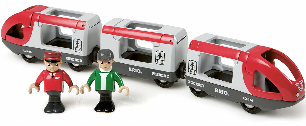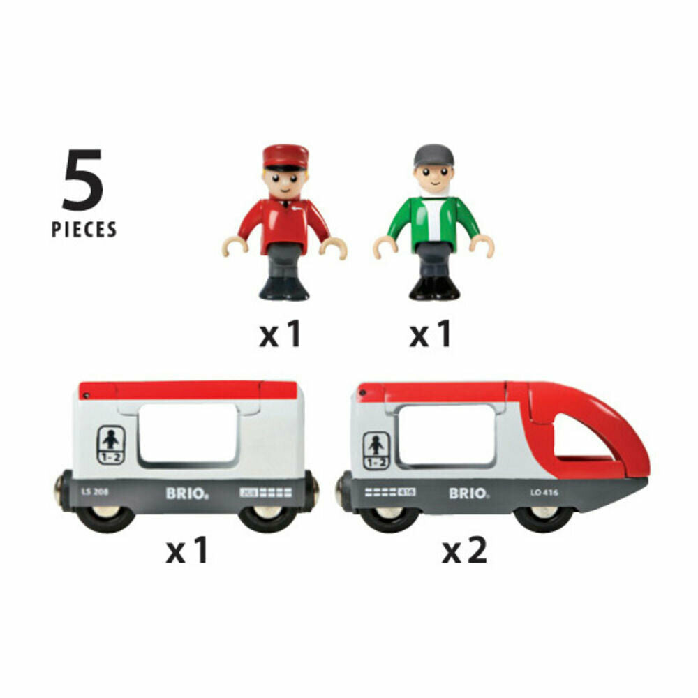 Hop on the Travel Train! This playful toy train is compatible with all BRIO railways. It has front, middle, and rear carriages for boarding passengers. Get ready for a new adventure with the red line travel train! Comes with 2 metro train engines, 1 metro train carriage, and 2 play figures. Measuring 28.9 x 3.7 x 5cm, it's crafted from responsibly sourced European beech wood and premium plastic. Perfect for ages 3 and up, this BRIO World railway set makes a great gift for both boys and girls.
