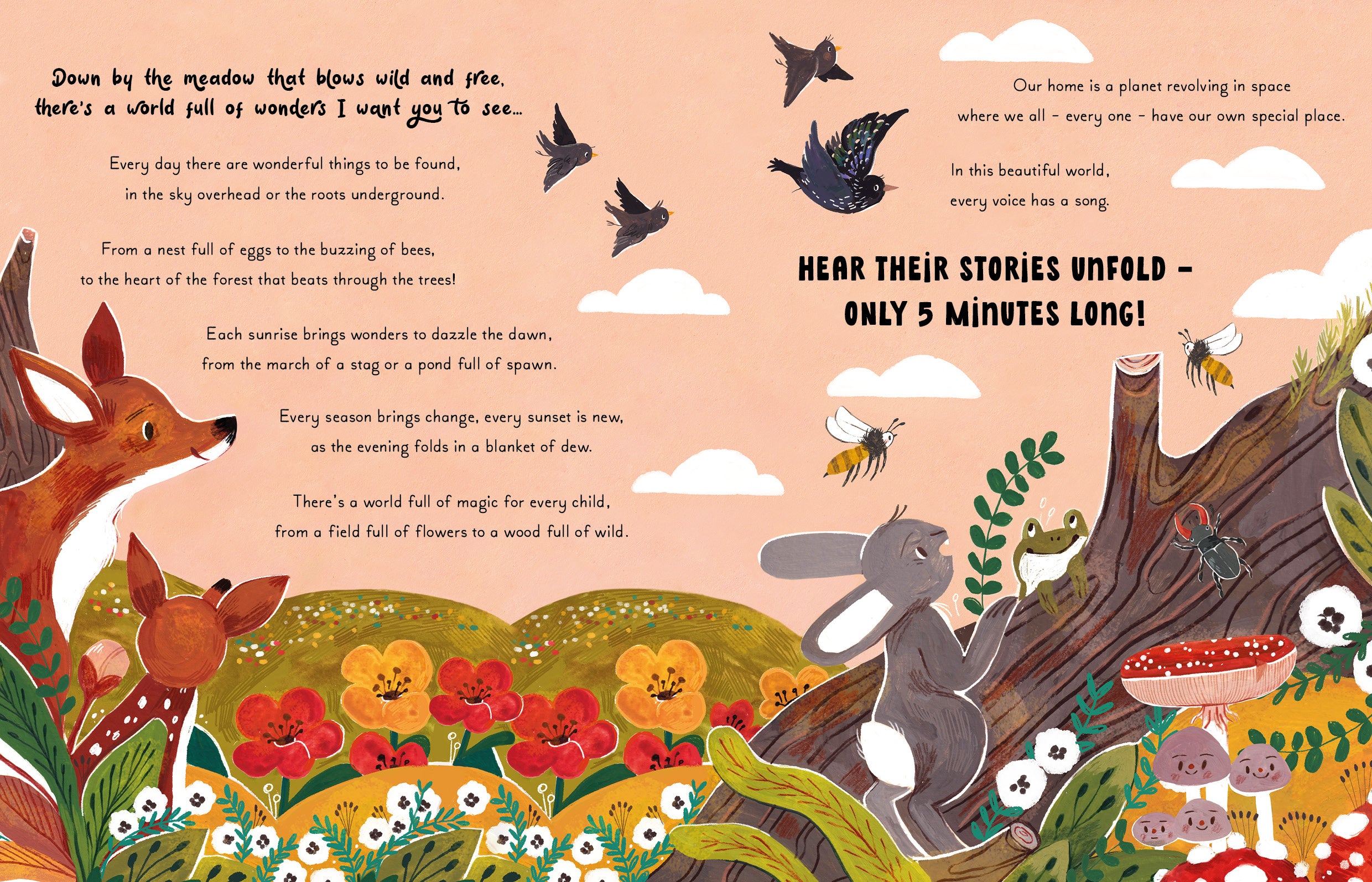 Discover the interconnectedness of nature with this non-fiction story collection. Written by science writer and poet Gabby Dawnay, each read-aloud story celebrates everyday miracles in a woodland. A gift to inform and delight the youngest nature lovers.