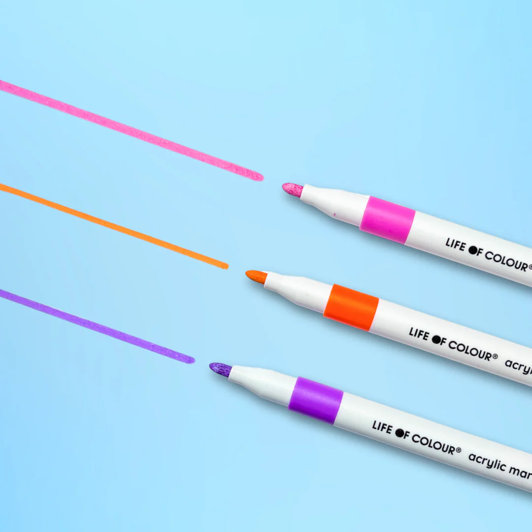 Created for artists of all ages, these markers bring a burst of fun and creativity into every art project. Whether you’re a child or a child-at-heart, the Tutti Fruity colours are perfect for adding a splash of vibrant energy to your artwork on any surface. Like all our acrylic markers, these are smooth, easy to use, and don’t require any pumping to get started—just like your favorite markers, but filled with rich acrylic paint.