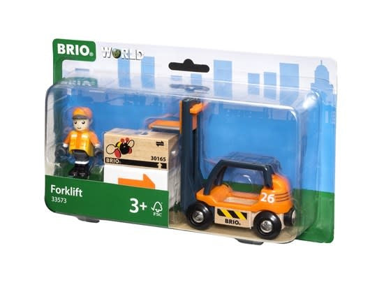 Goods and cargo are coming and going with trains and trucks from all directions. Use this detailed toy fork lift to help the worker. Lift the loads up, down, off and on trains and trucks with the help of the lever. The poseable figure fits perfectly inside the driver´s seat.