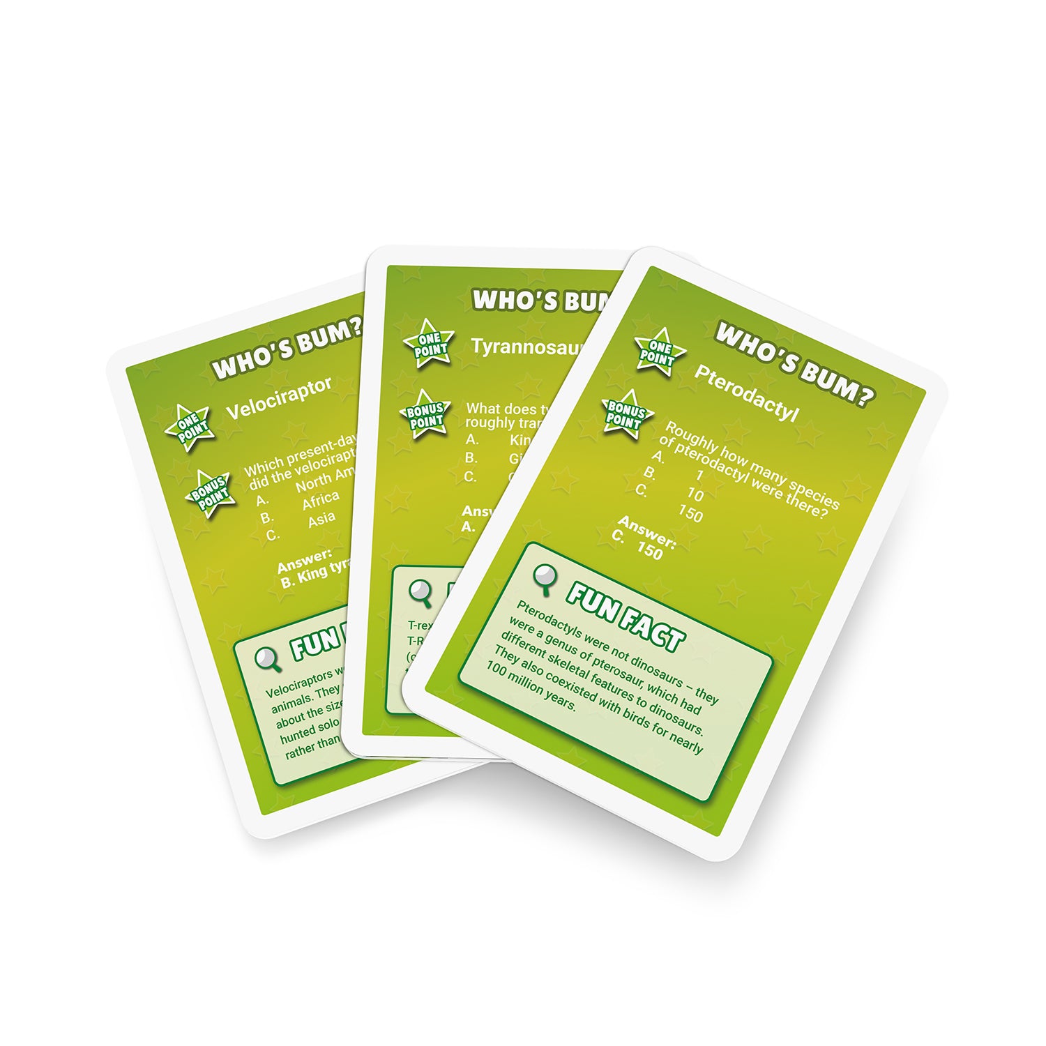Can players name the dinosaur from the derriere? Name That Bumhole: Dino Edition is a Jur-ASS-ic take on our original bestseller, Name That Bumhole.