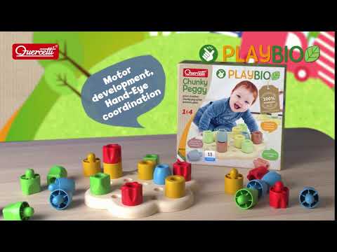Chunky Peggy is the new game made with eco-sustainable material belonging to the Play Bio Line. This new line, 100% Made in Italy, is characterized by the use of an exclusive biocomposite material made of wood and plastic, designed to reduce CO2 emissions on the planet. Chunky Peggy combines the innovation of materials with the educational value of content. The product, designed for children, allows a prolonged gaming experience to be played in complete safety. In the kit there are many large pegs, which the child will have fun to fit together or to insert into the solid base with rounded edges. The game develops the visual perception of the child, hand-eye coordination and fine drive.