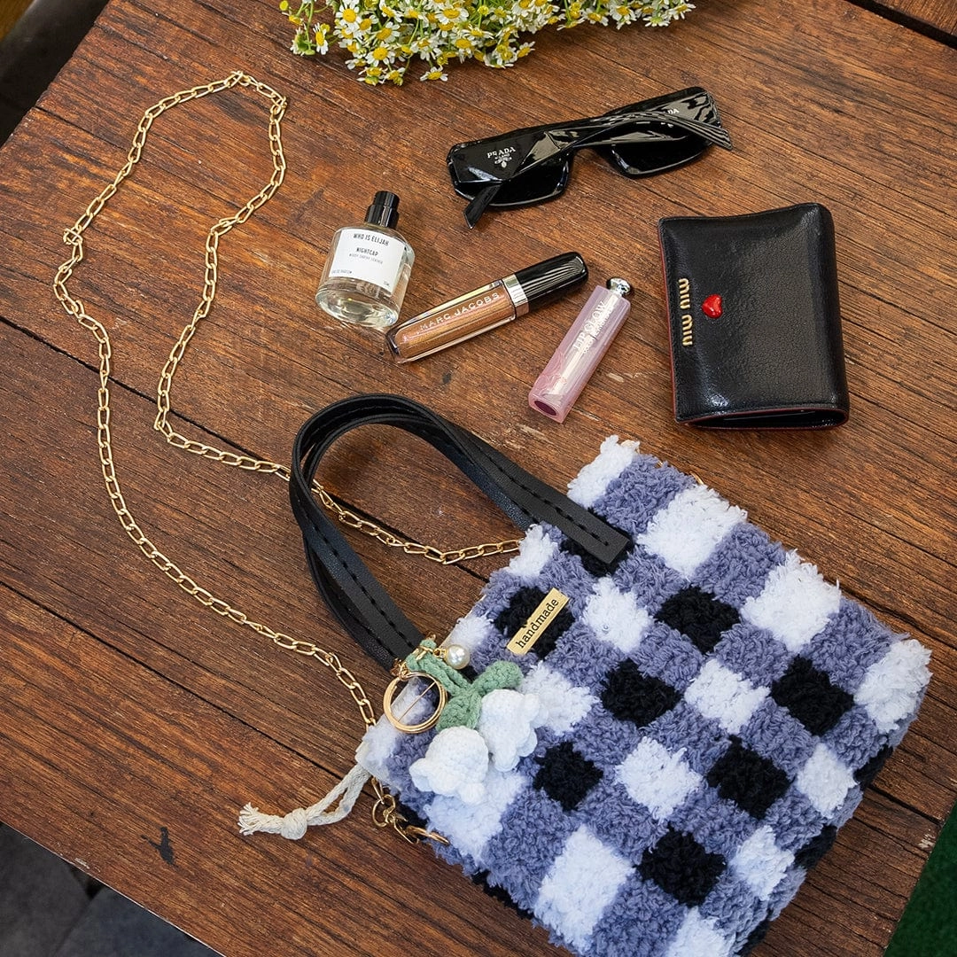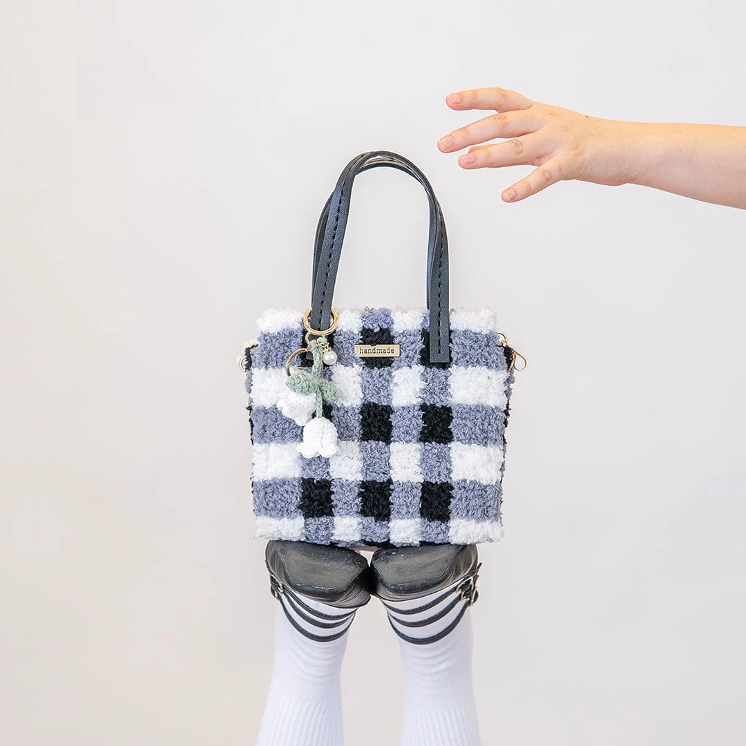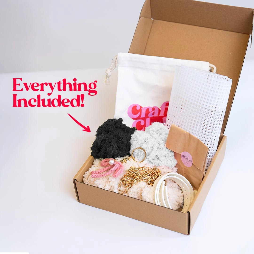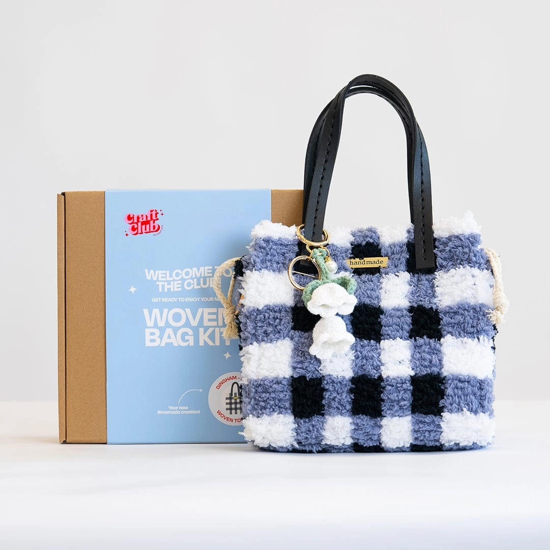 Our BLACK GINGHAM design was inspired by our love of the classic print. Including it's own thoughtfully curated snow drop keychain, its ready to be styled as soon as you've finished! Perfect for beginners! Our bag kits involve weaving lusciously soft feather yarn into a sturdy canvas. Taking between 3-5hrs to complete, they are the perfect weekend project for one or a crafternoon activity for friends!