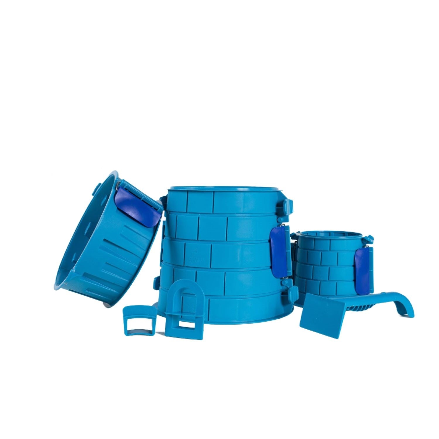 Our split molds allow you to build beautiful sand or snow structures in a short amount of time. Just buckle it, fill it and Create A Castle. Our premium pro tower kit includes a 10 inch split cylinder, a stackable 6 inch split system cylinder for additional height, a corbel to add stabilization and a beautiful effect in between the towers, battlement brick form, window cutter and a mesh backpack for simple transportation and cleanup!