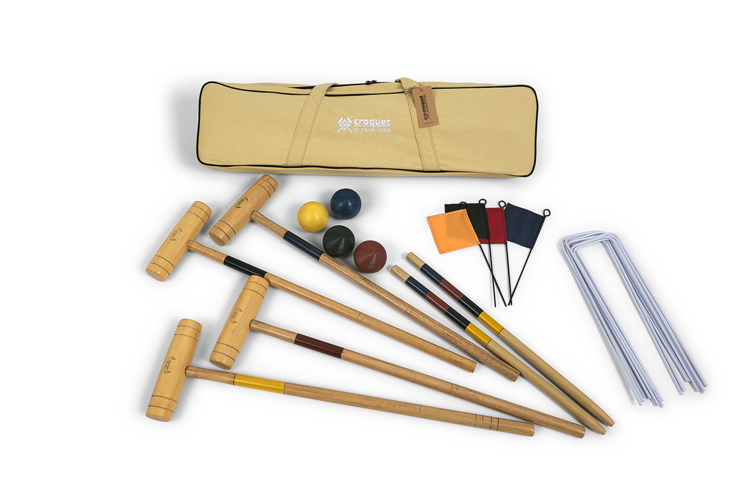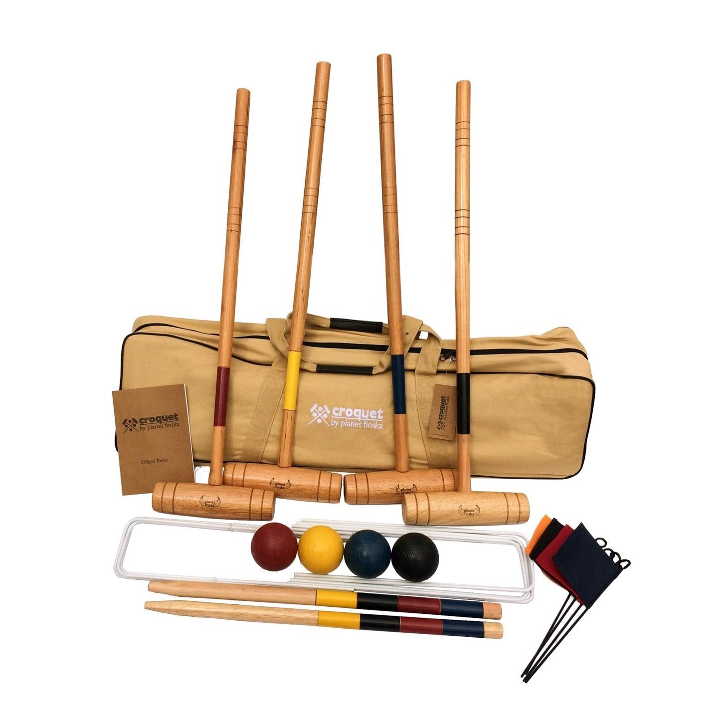 Premium Croquet comes packed in our superior heavy duty canvas bag and includes official rules for both nine wicket backyard croquet and six wicket garden croquet.
