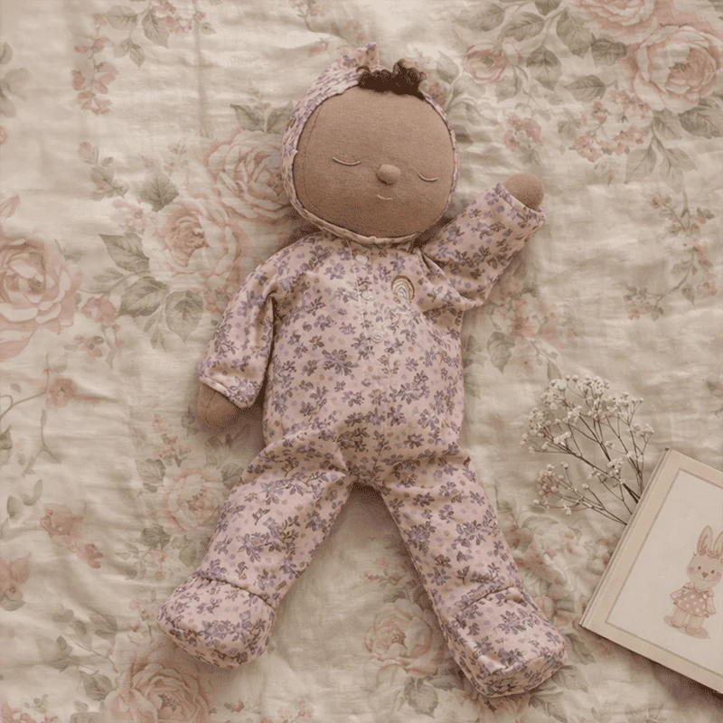 Tootsie is tucked up in a soft blush floral print - a little garden of tiny blooms made for cosy days and dreamy nights. From first cuddles to long car rides, Tootsie is a calming, gentle friend made for little arms to hold.