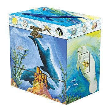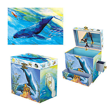 Open the lid of this gorgeous children’s music box by Enchantmints to see the Orca dance to the tune of Santa Lucia. A magical place to store tiny treasures, with four secret drawers, illustrated with a magical underwater ocean scene in soothing watercolours, this music box will be cherished for many years.