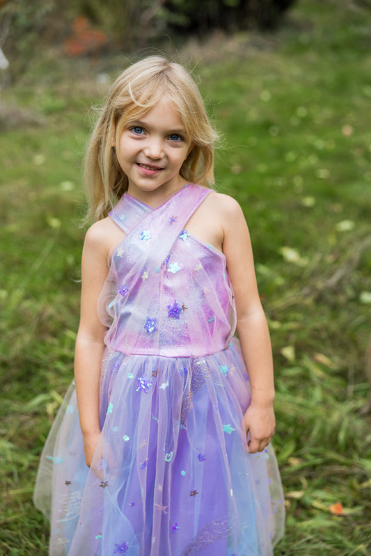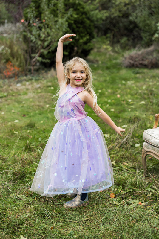Adorned with a constellation of stars, this dress is perfect for any occasion and invites your child to twirl and dance under the night sky. The dress is not just a piece of clothing, but a celebration of childhood dreams and the enchantment of growing up. It encourages your little one to reach for the stars and embrace the magic of each era.
