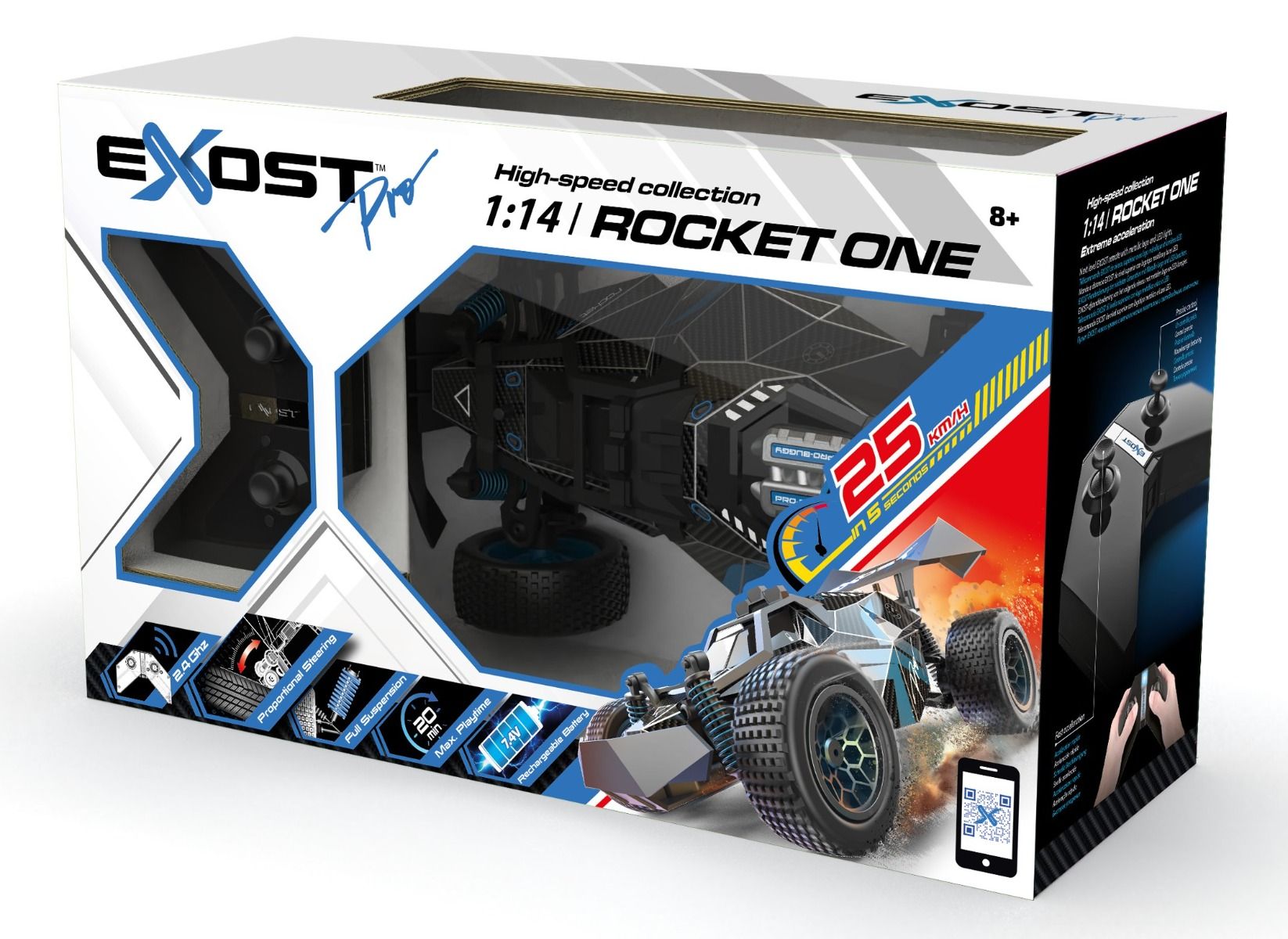 The EXOST Pro Rocket One is a cutting-edge remote-controlled car made for kids 8 years and older. Zooming at speeds up to 25 km/h, it guarantees exciting adventures and smooth driving fun. Enjoy exact control with its digital proportional system, while the differential gear and full suspension keep the ride steady no matter what. Plus, a long-lasting battery means more playtime and endless enjoyment behind the wheel!