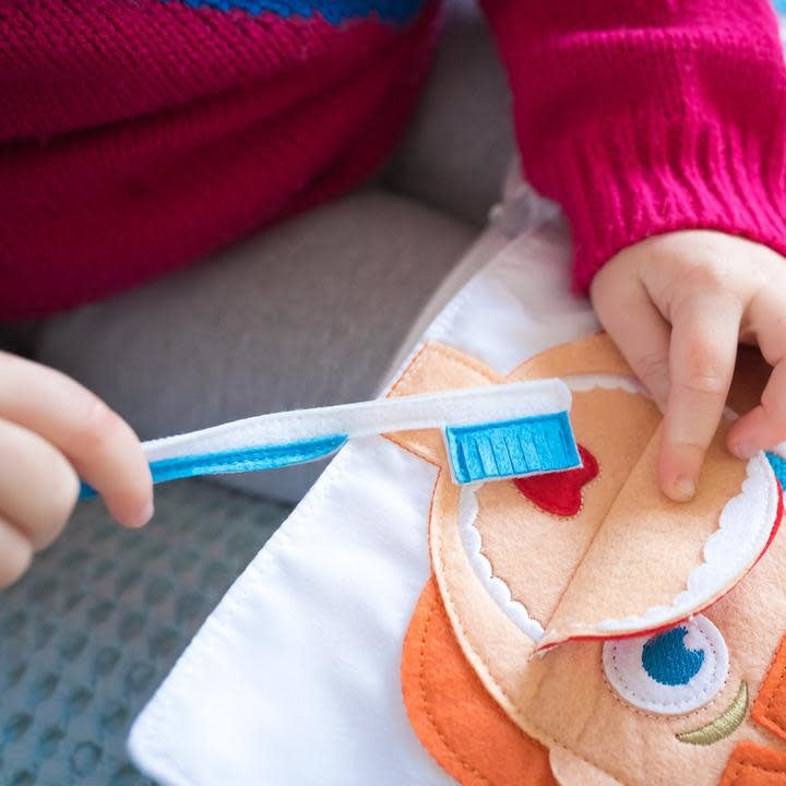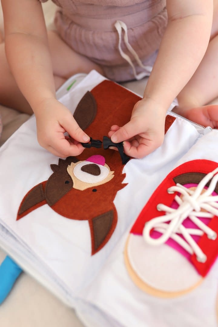 There are 10 interactive pages encouraging hands on learning, including telling time, brushing teeth, lacing shoelaces, unzipping, getting dressed, buckling the dog's collar, preparing food, doing household chores, matching, buttoning and much, much more.