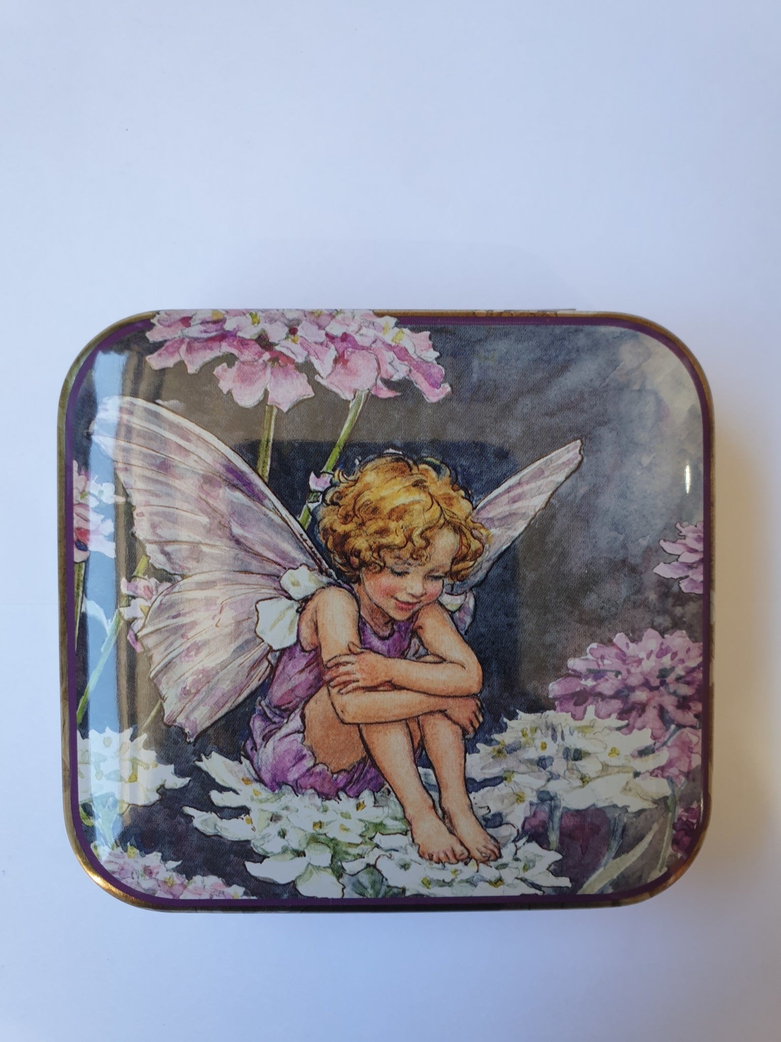 A tin with a hinged lid which can be used to store small items and keepsakes