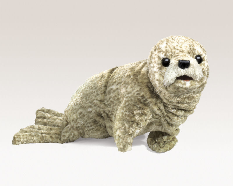 Graceful and super cuddly, the Harbour Seal puppet is simply adorable. Soulful eyes and silky fabric fur lend to the irresistible nature of this heart-warming creature. Features movable mouth and front flippers.