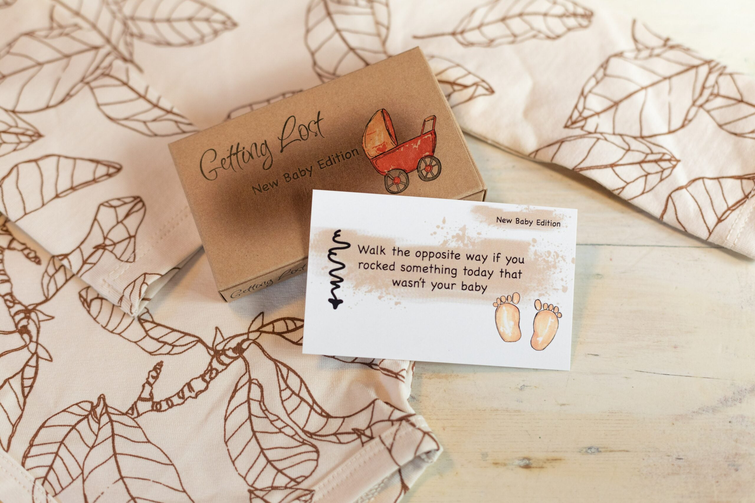 There’s nothing like those first few months with a new baby – the sleepless nights, the first smiles, the amazing days, the days that never end and of course there are the long drives and walks when you’ve tried everything and you still can’t get baby to sleep. The New Baby Edition is a 15 card Getting Lost Game to bring a little adventure and fun to those walks and drives.