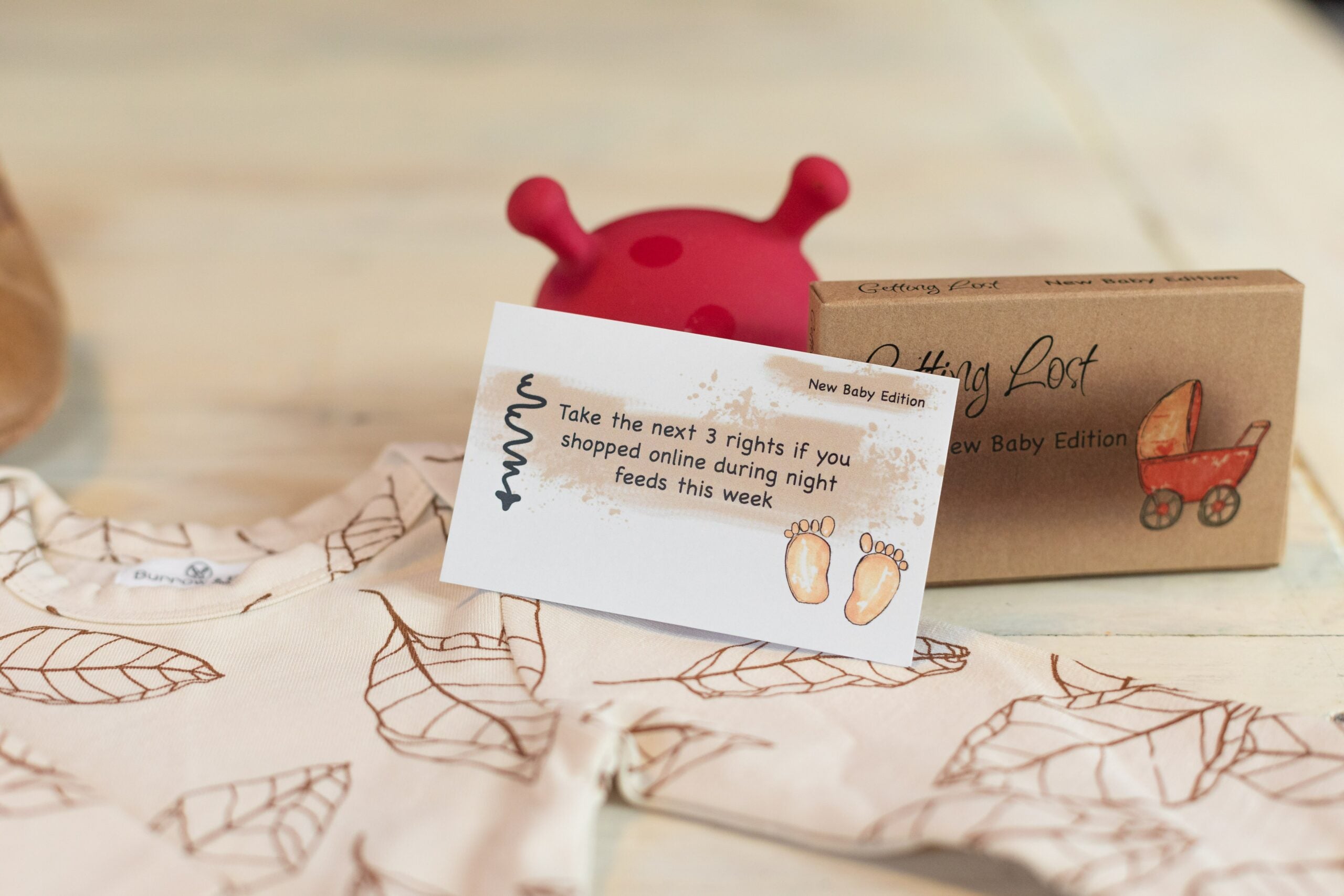Your direction will be determined by who cried last, your online shopping while feeding, the hours of sleep you’ve had, what you rocked and searched and if you’ve managed to stay in the clothes you were in this morning. We’ll give you a spot on the back of the cards to record where you end up and how you were feeling for your baby to read in years to come. And because we know how tough those first few months are we’ll give you a few treats and breaks along the way.