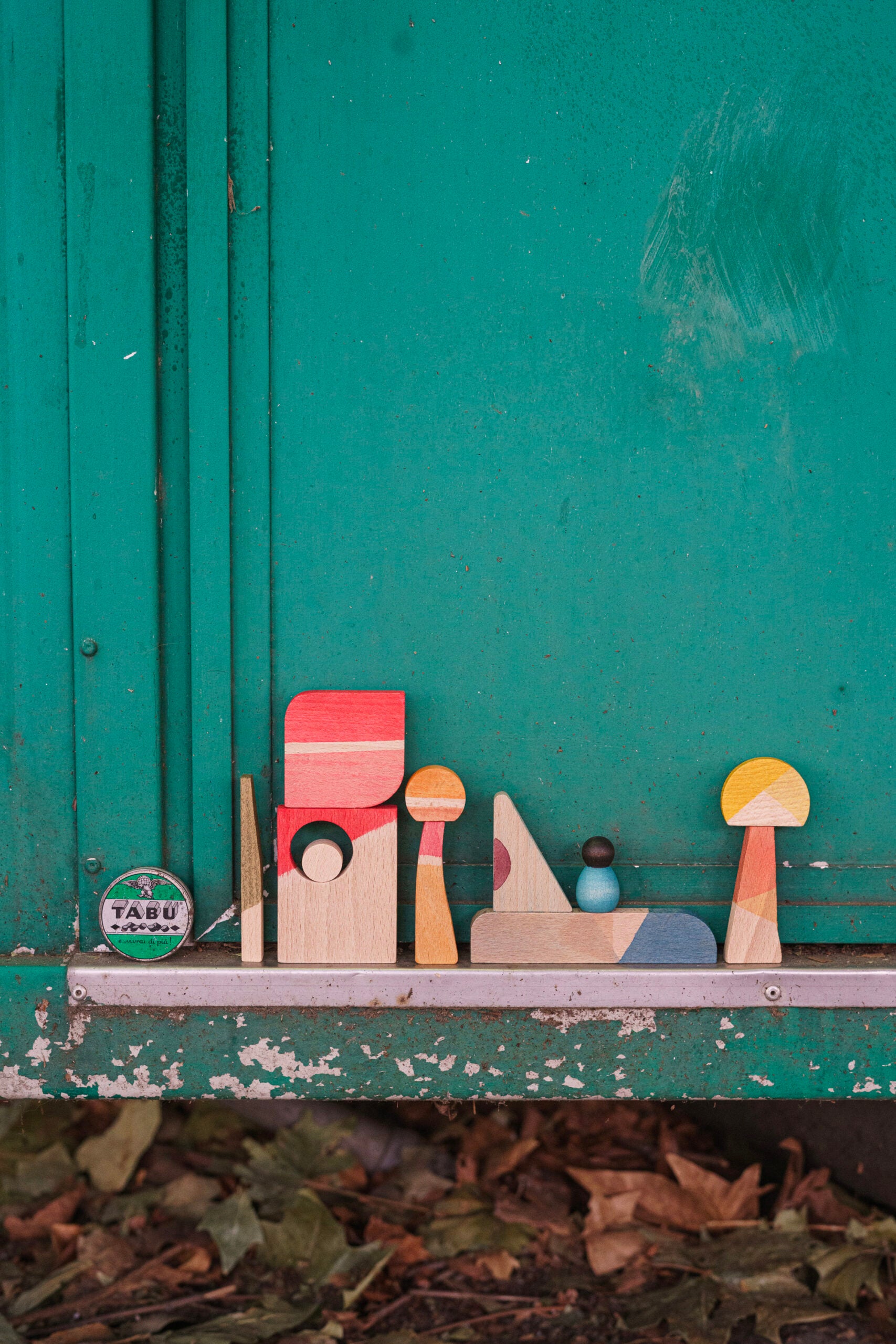 Let children build cities and towns and villages or other creative visions from their imagination with the ‘Happy Place’ Grapat set of loose parts.