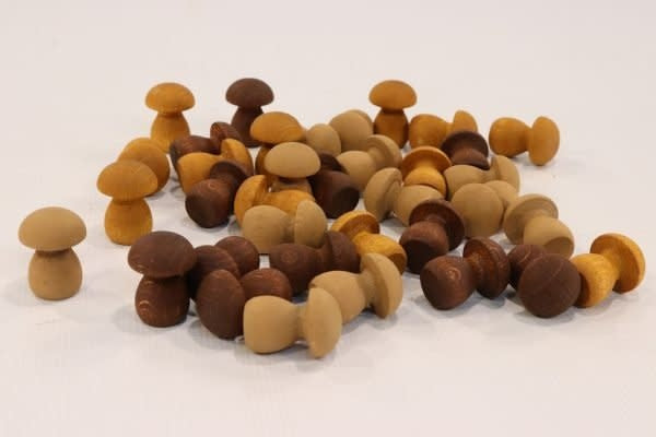 Contains: 36 small wooden mushrooms in shades of brown.
