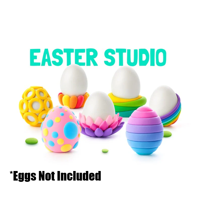 This vibrant clay is soft, lightweight, non-sticky, nontoxic, and stain-free - perfect for young artists taking their first step into the magical world of clay creativity. The fun starts once you download the free app and gain full access using the code included in the box. Pick one of the seven designs. Then, grab an egg (hard-boiled, wooden, or otherwise), grab the sculpting tools, and follow along with the interactive 3D step-by-step instructions to masterfully mold it, one simple shape at a time. All the while - spheres, cylinders, textures, and more - kids are learning real sculpting techniques! Give your favorite Easter tradition a big boost of creativity with the Hey Clay Easter Studio.