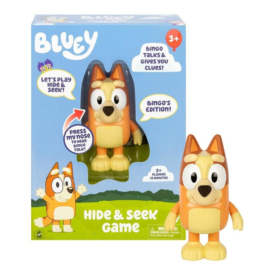 - Interactive Play! Kids can enjoy a real-life game of Hide and Seek with Bingo, an adorable electronic figure that makes the classic game even more fun. Bingo can be hidden anywhere in the house, creating endless possibilities for imaginative play. This interactive element keeps children engaged and encourages active playtime.