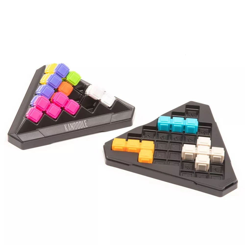 TikTok sensation Kanoodle Pyramid is a puzzle game featuring an oversized, pyramid-shaped board and unique triangular pieces that fit together to solve 200 2-D and 3-D puzzles. The set includes an extra-large board that doubles as storage, nine puzzle pieces, and a puzzle challenge booklet. Designed for ages 7 and up, Kanoodle Pyramid builds strategy, critical thinking, and problem-solving skills. Ideal for parties and family game nights, this game can be enjoyed by one player or collaboratively.