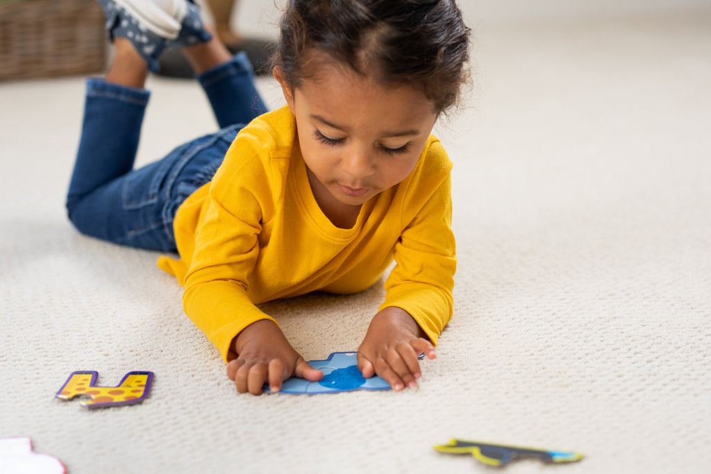 Crocodile Creek's Let's Begin puzzle contains ten different 2-piece puzzles that are color coded on the back for easy sorting and color matching. Packed in a wonderful storage canister with a nylon rope handle. Suitable for ages 2+