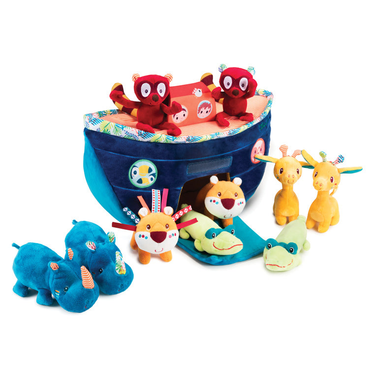 Set sail on a whimsical journey with the Lilliputiens Noah's Ark Set. Designed to captivate young minds, this soft and tactile playset is brimming with features that inspire endless adventures. True to the Lilliputiens' commitment to quality, each piece is crafted from beautifully soft fabrics, ensuring a delightful tactile experience.